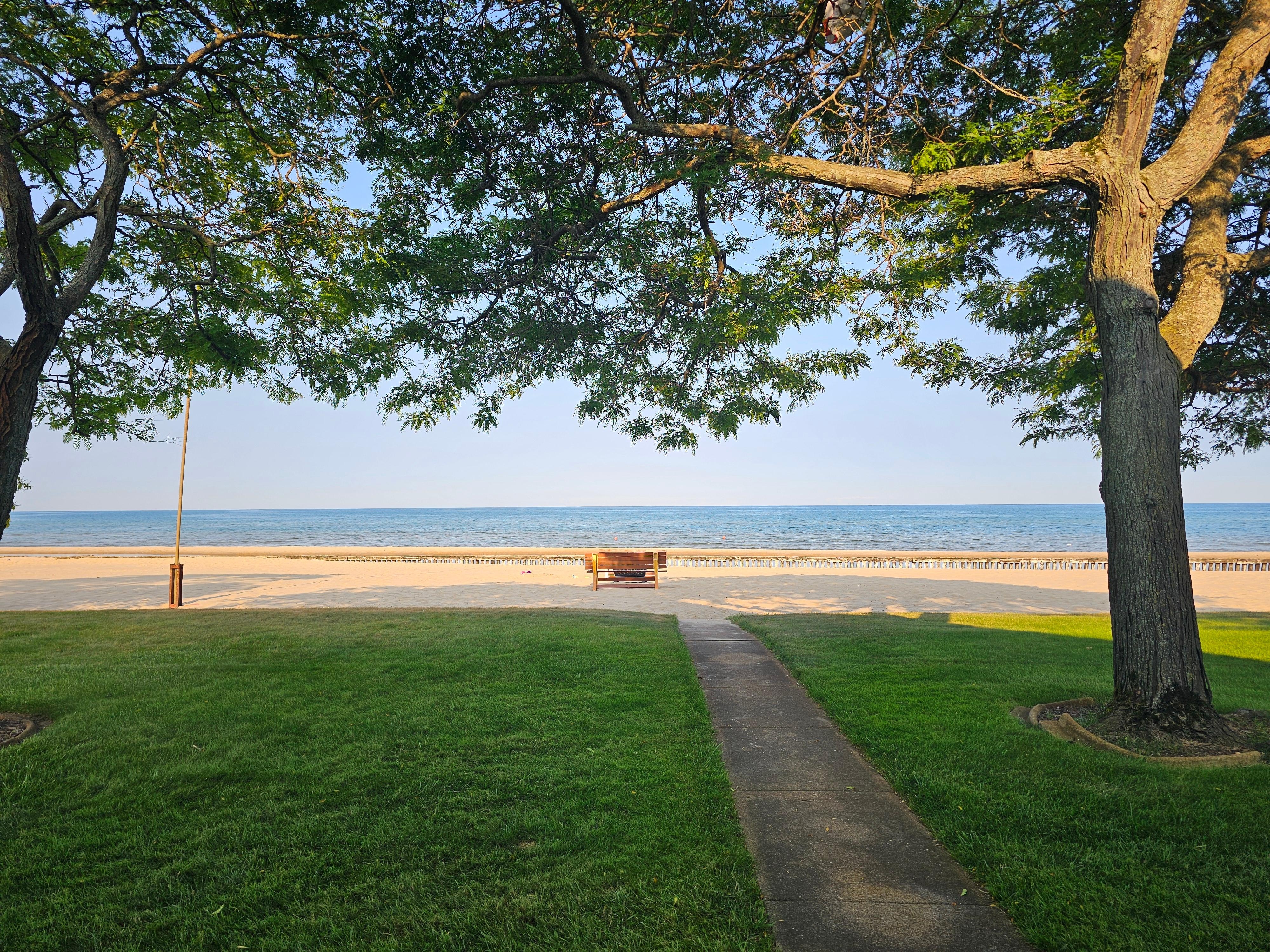 Large 3200 square ft. waterfront vacation home on majestic Lake Huron. Enjoy swimming, sunning and playing on the ample pristine sugar sand beach by day. Take a long walk along the beach and enjoy watching the kids run in and out of the shallow shoreline. Clean and up to date, the home is cozy and comfortable with plenty of living space for all to enjoy. On a clear night, the star gazing is awesome, while sitting around the campfire. The house features ample lounging/relaxation areas, perfect for an evening game of cards and family togetherness. Tastefully furnished with a full service kitchen. Dining room and deck overlooking beach. House is tucked away on a quiet street off the highway. Minutes to golf, restaurants, shopping, marina with boat launch, and state park.