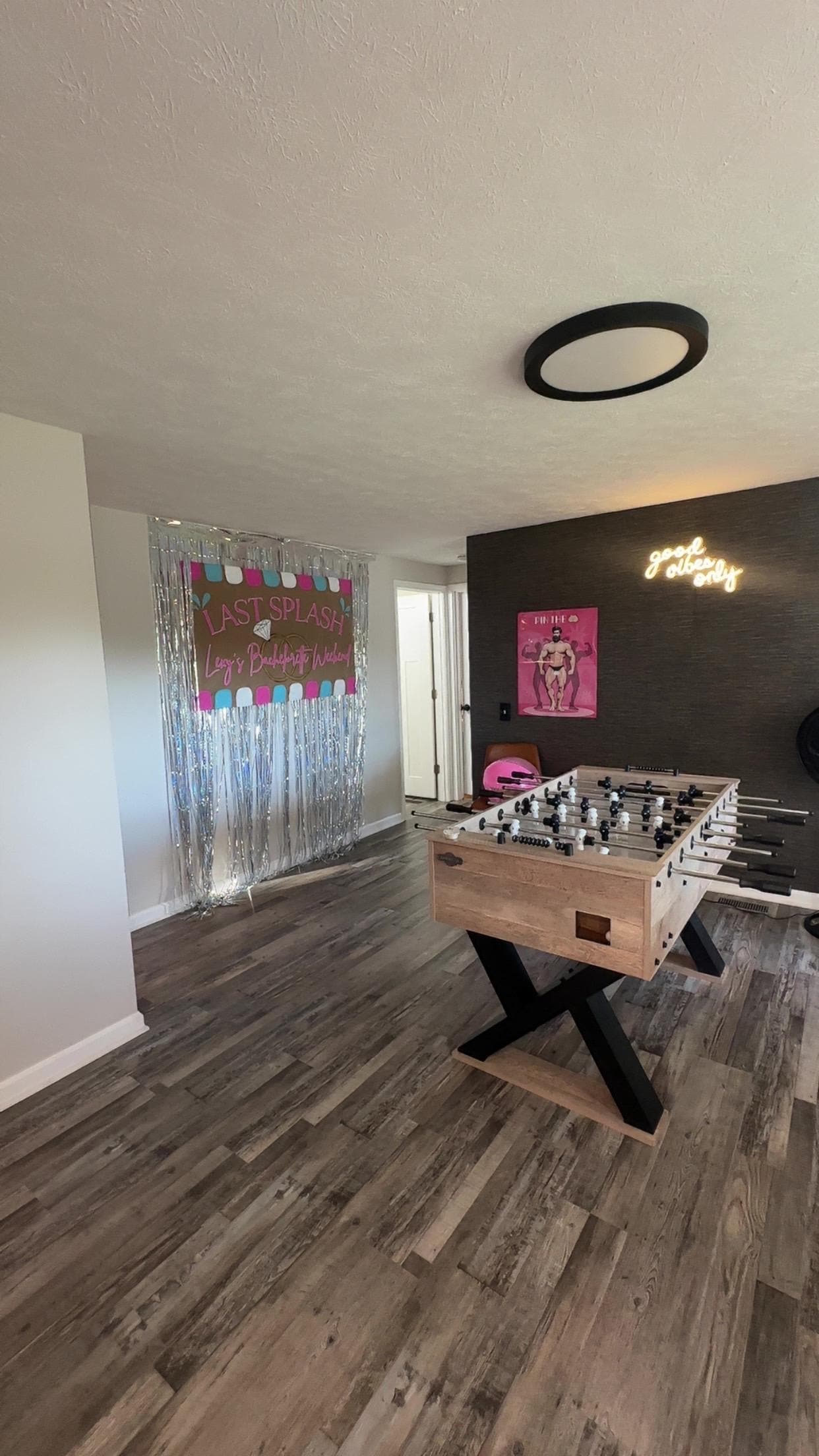 - Game Room - Foosball table, office desk and chair for dedicated work space, along with drop zone for jackets and shoes