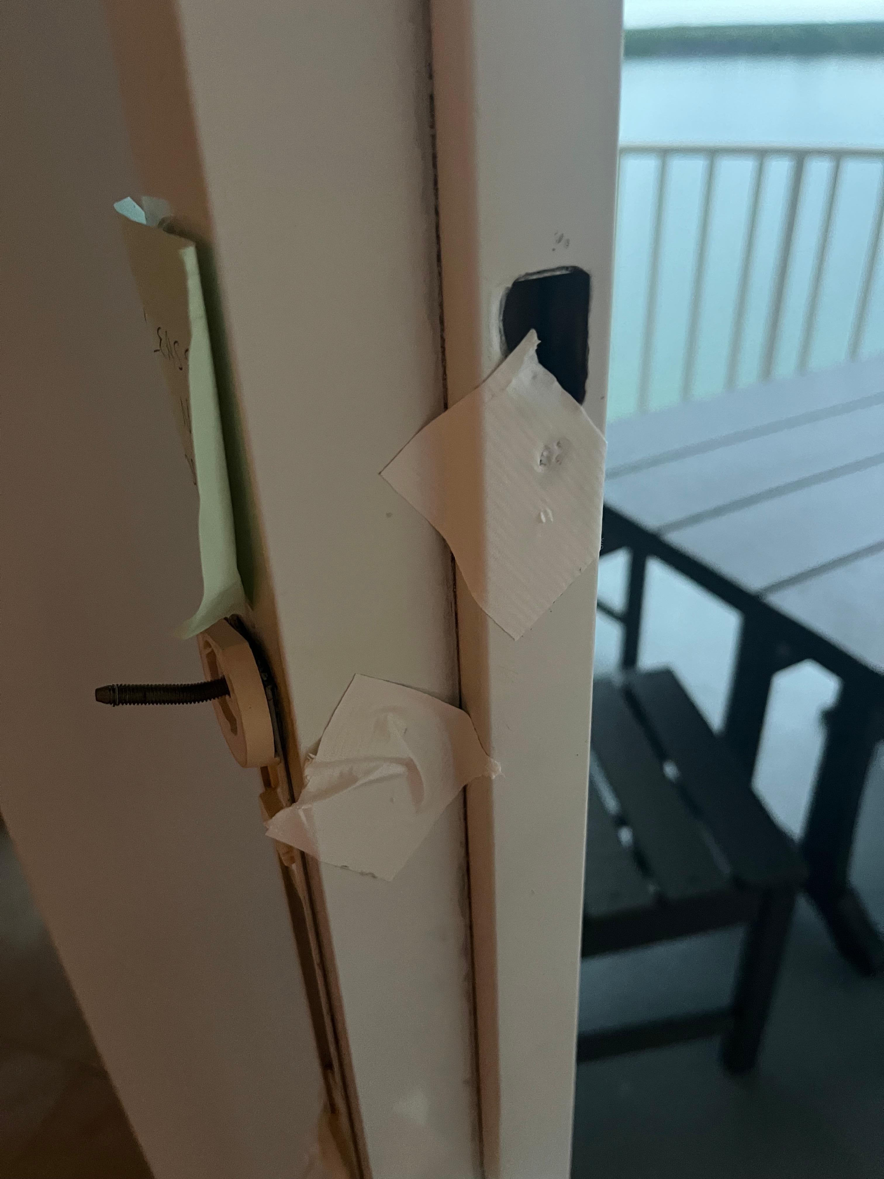Sliding door handle broken Ac not working for the first 7hrs after check in finally got a new thermostat 9:30 10:00 pm