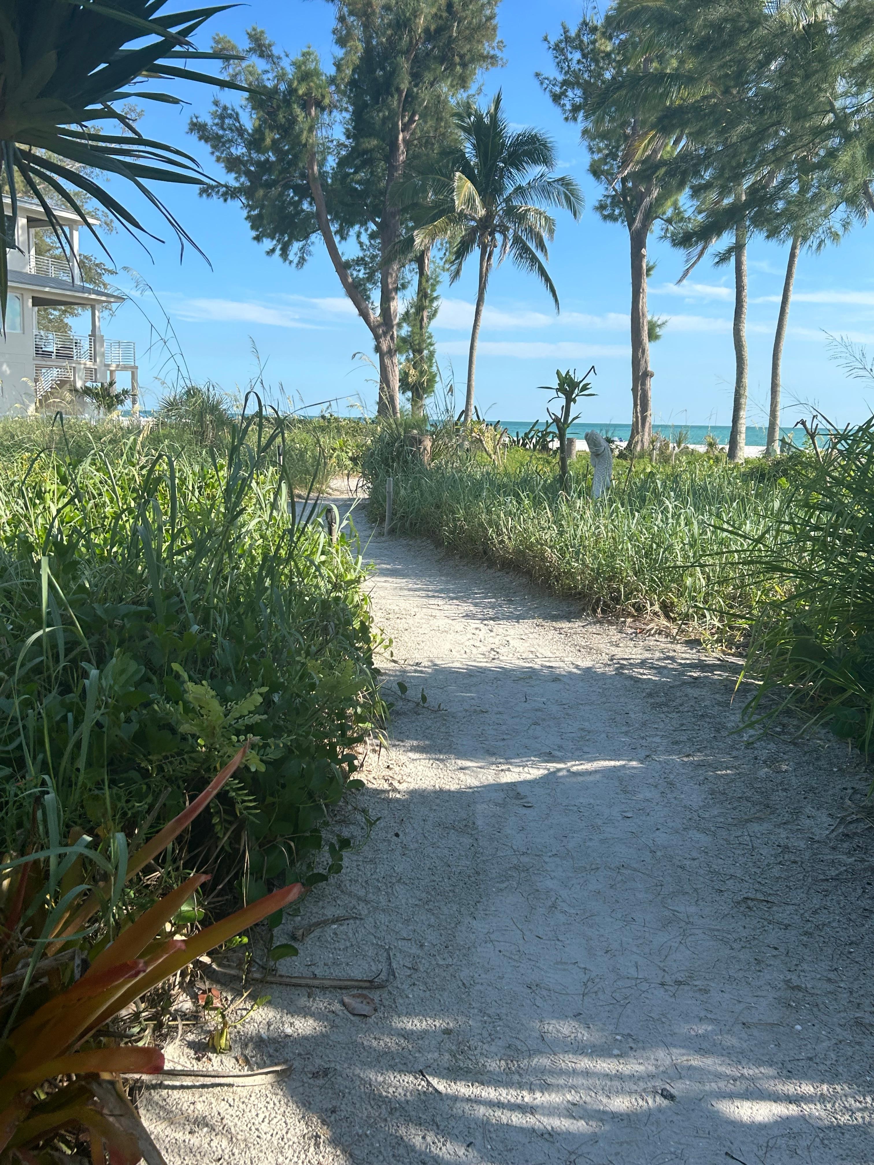 This home rests on a 1.23 acre lot directly on the Gulf, a rarity on the island. The lot is surrounded by mature trees, tropical vegetation, and views of the Gulf and its sandy shores.