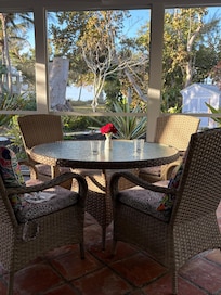 The master bedroom has king size bed with half bath and TV. The guest bedroom has 2 XL twin beds and a small TV. Both rooms open to a screened lanai where you can enjoy the beautiful surroundings.