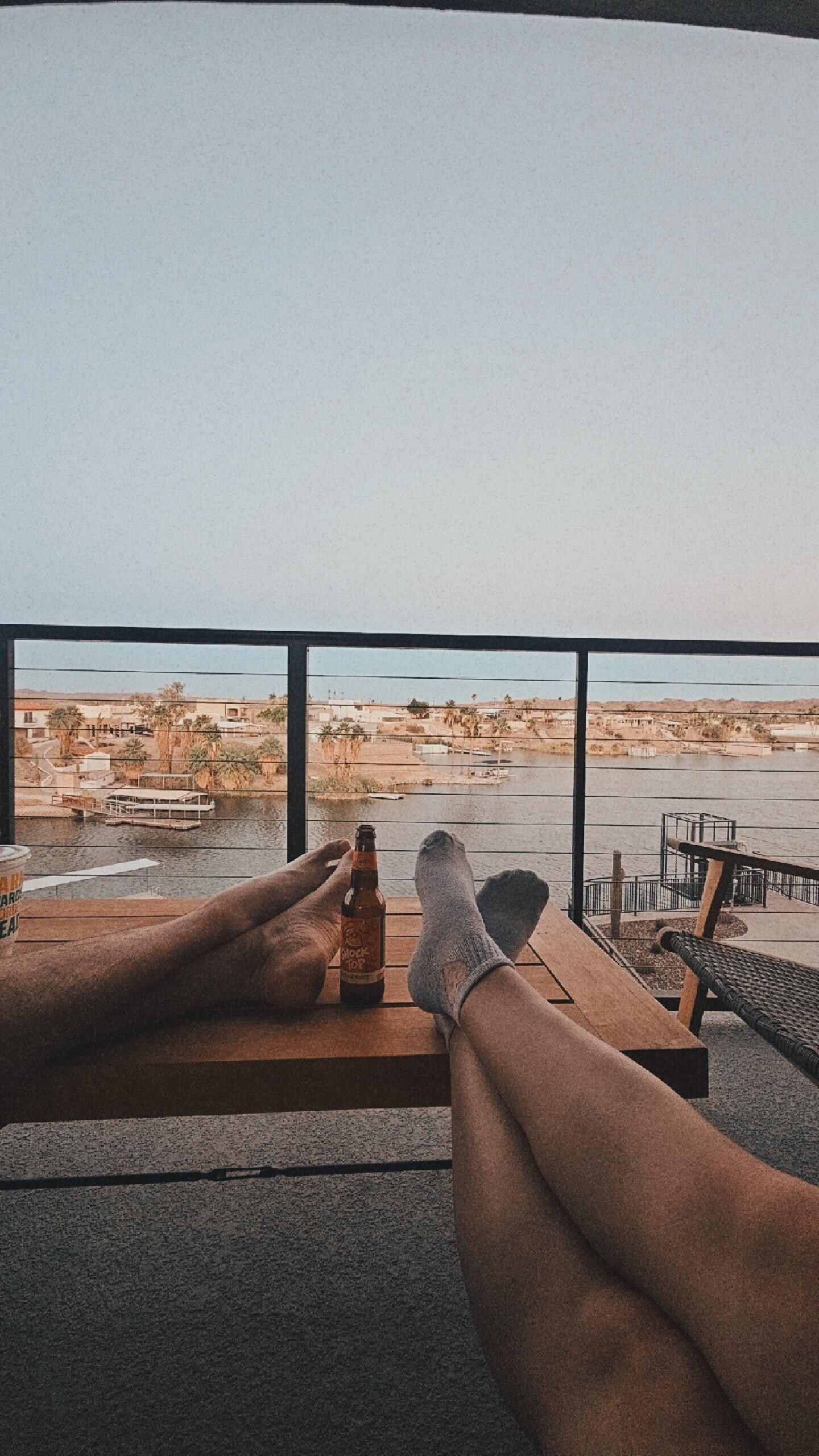 -Roll up garage door in rear that opens up to breathtaking views of Fisher's Lagoon and the Colorado River