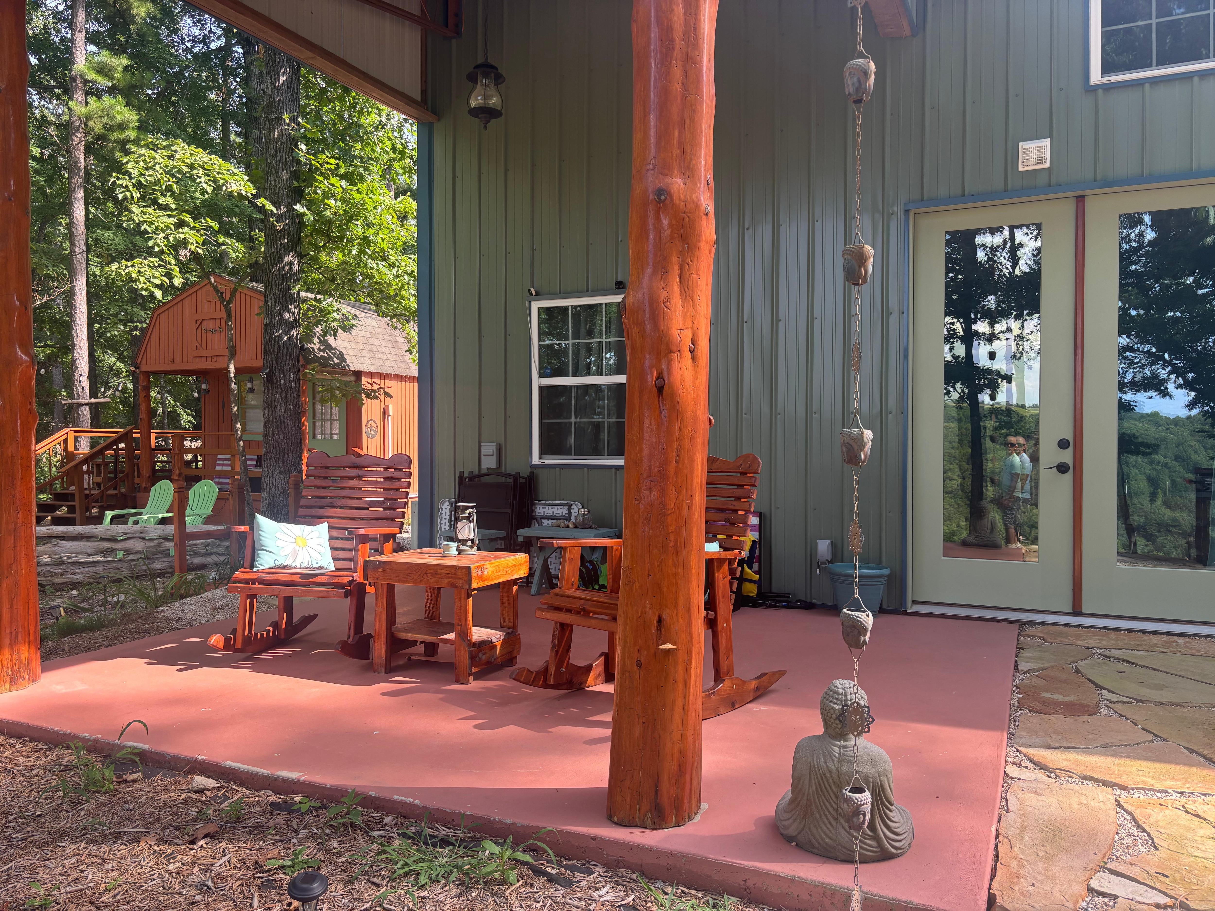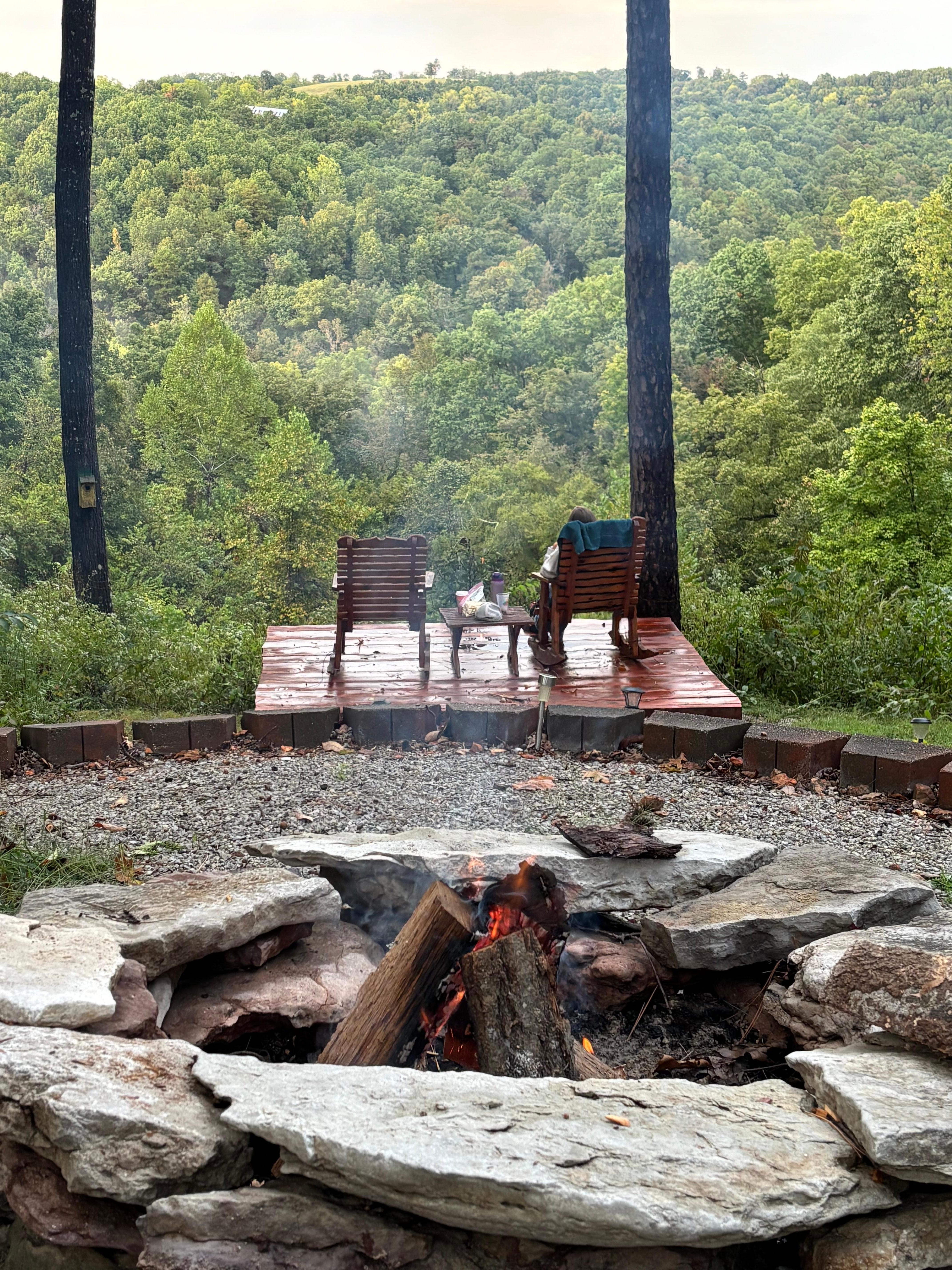 Noone lives onsite at all!Romantic Mediterranean rustic elegance with gorgeous sweeping mountain views & tall french doors. Exquisite deco featuring stunning Blue onyx & aqua floral tiled walls ,14 jet hydro massage jacuzzi spacious sparoom, warm lanterns, euro drapes, cedar log bed, & velvet sofa. Gorgeous Fall Mountain Views in the backyard! Cozy up by the fireplace and watch some movies! Enjoy the High end Jacuzzi spa overlooking the Mountains. Good WIFII , cedar rocking chairs on the patio, starry moonlit campfires by multiple rings, 2 story nature Treehouse, fish, waterfalls, & swimming just 5 minutes away. Shopping, Restaurants, Art,& Live music downtown.The views overlooking the Mountains are incredible! You will love it! Everyone really enjoys the Mountain views here!The internet works on the property for all rentals. We have had multiple guests stay onsite and work remote jobs using our wifii. They guaranteed us that they had no Issues. If you need help with finding the wifii network we will do the best we can to help guide you how to input the correct password. You can drive any type of car to the property . Do not need truck or suv. We recommend 4WD when there is snow or ice . We strongly Dont recommend motorcycles. Take our word for it. You will LOVE the very scenic Mountain property by the lake!We have provided very thorough information about the property.Beaver Lakes swimming, Hiking, fishing, renting kayaks, rent paddleboards nearby , Mountain biking , & waterfalls all just 5 minutes down the road. Enjoy reading, writing, or music on the teal velvet sofa in front of the cozy electric fireplace. Tons of Shopping, Restaurants, festivals, Art, & Live music nearby in downtown Eureka Springs. The Eureka Mountain view jacuzzi suite is located next to another one of our highly successful mountain rental cabins. The Howling Mountain Wolf which can also be found on another rental platform . Everyone loves it here on the Mountain. The rental cabin has a separate private yard area of its own . The jacuzzi suite has its own private patio area with cedar rocking chairs.Please read everything . The suite comes with a Blackstone Bbq griddle. That is the grill for you to use. Your space is not shared inside and it is a separate unit with its own exterior entry doors. The pathways , trails, multiple mountain view decks, & campfire ring areas are shared. The great news is there are multiple decks & multiple fire rings so when the cabin guests are using one deck or campfire area you will be able to use the many other areas available for use. The two campfire & hangout areas sit pretty far from each other still allowing for privacy . There is the creekstone boulder fire ring with benches and a platform deck with cedar rocking chairs down the trail.There is the scenic Mountainview two story treehouse deck. The treehouse deck has a hammock & a two person cedar swing with the tree growing through the center! A REAL treehouse deck! Its time to channel your Huckleberry fin out here in the wilderness like your soul has always been calling for! The second level has several chairs, a small table for food or drinks. A small set of stone steps takes you down to the treehouses campfire grilling area with chairs!Come howl at the moon, do some yoga, play some music, enjoy drinks under the starry moonlit night listening to the sounds of nature. The singing summer cicadas , treefrogs, many song birds ,& hoot owls will sing for you! The energy is powerful. The entire property is famously known for its gorgeous ambient magical lighting throughout the property such as ambient string lights, path lights along the trails & artistic glowing lights in the trees .The jacuzzi Jet system is powerful and will make noise while its running. This is because it is a very nice jacuzzi with a powerful multi jet system and it works very well!The acreage is Exspansive , leaving a lot of room for space and privacy for others .The property is very beautiful. For code reasons, we do not allow for people to use space heaters in any of the rentals on the property. You will not need to bring your own space heater. Every unit has a very nice fireplace along with extremely adequate higher End mini split heat systems that are on the wall. We can guarantee that you will stay warm and cozy throughout the winter time here and the colder seasons .