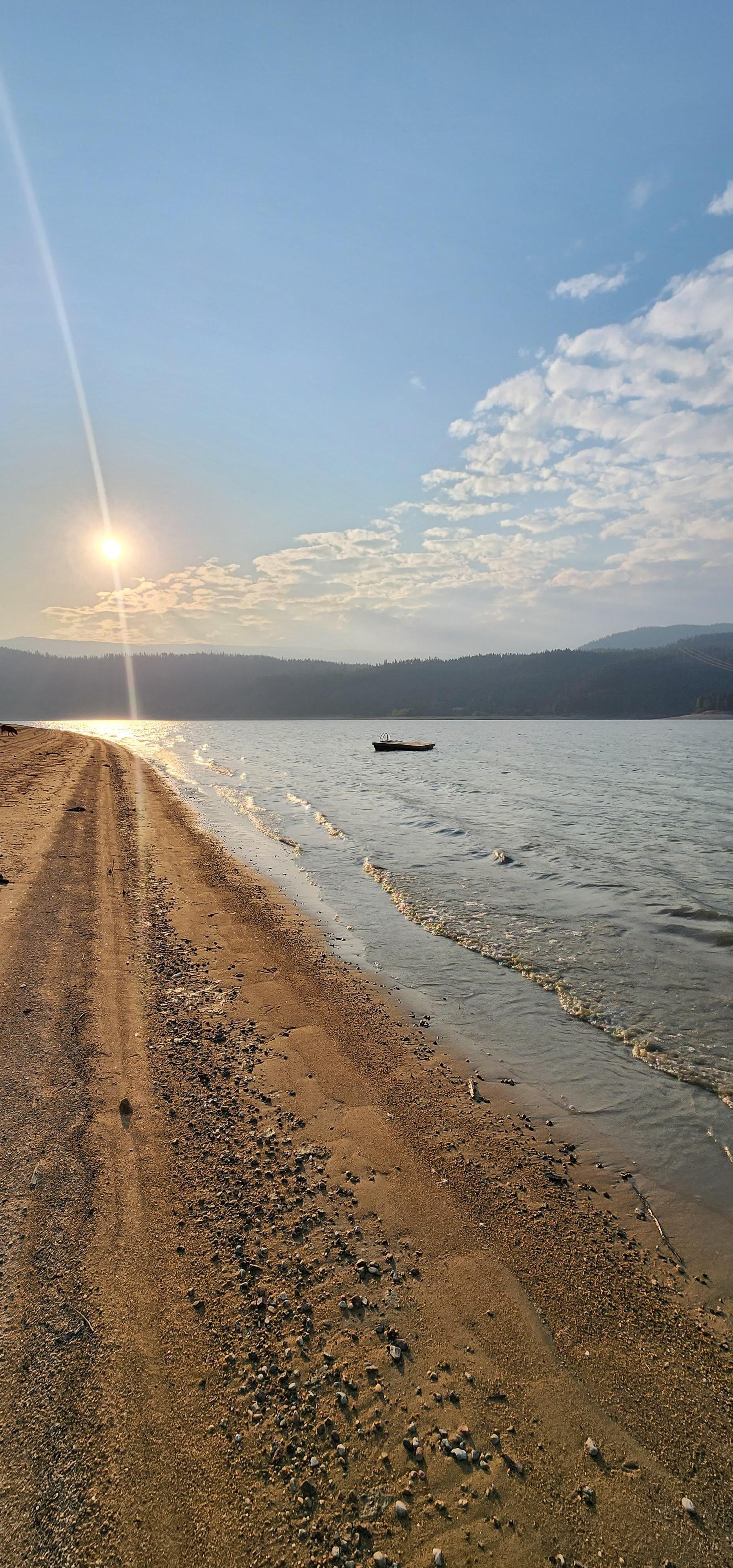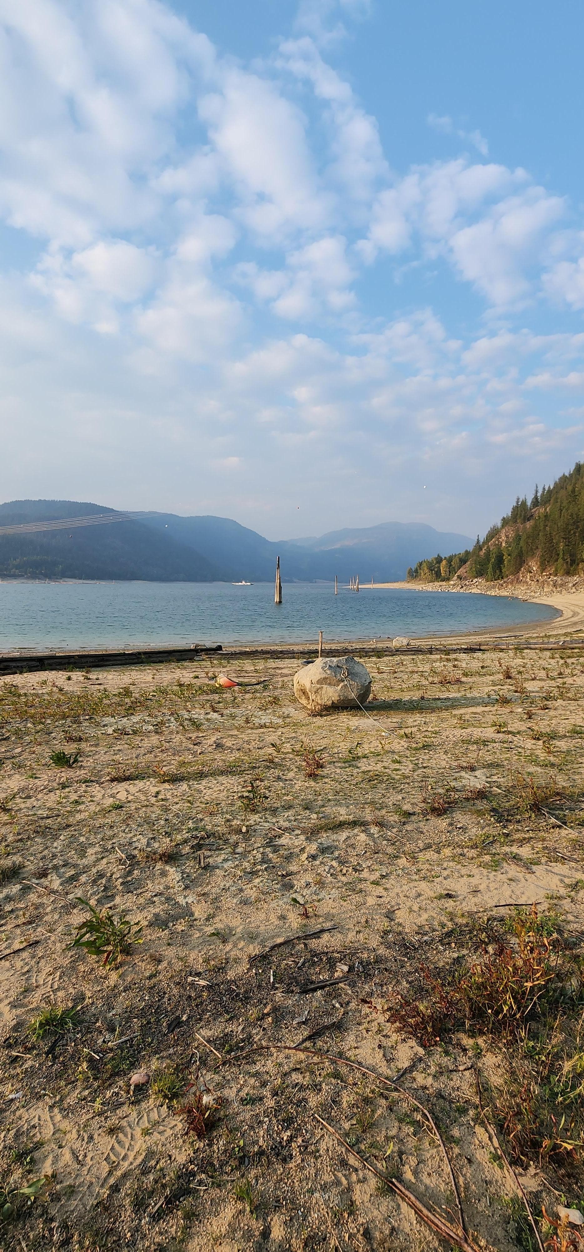 Our property provides the ambience of a private secluded summer residence with beach. The cabin is on a hillside overlooking our lake front pasture and our private bay with sandy beach. The location is very private with a beautiful deck where you can enjoy the sunset over the mountains.