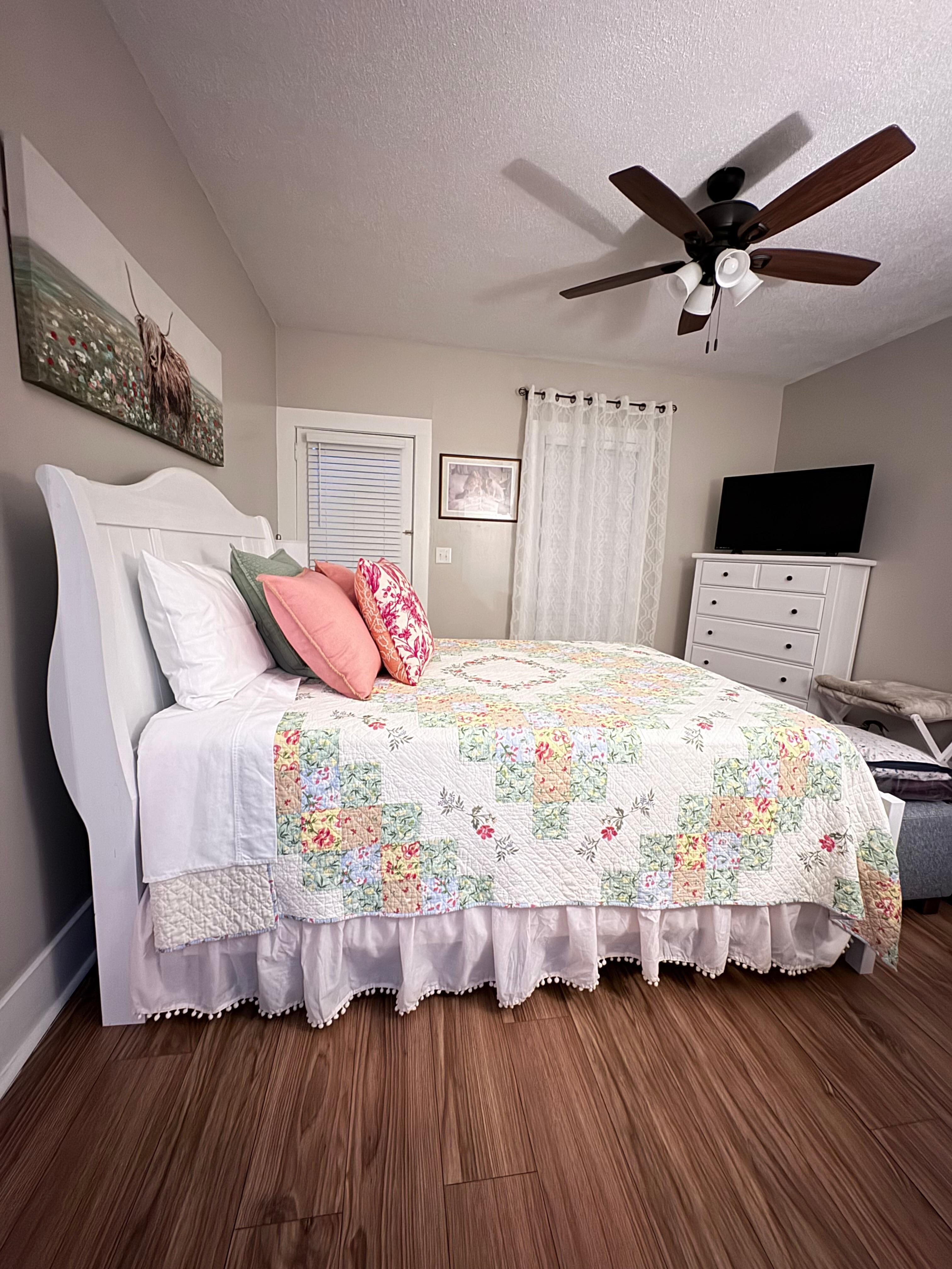 Located just a block off Main Street, it’s a peaceful walk to downtown where you’ll find local shops and restaurants to enjoy, or relax on the front porch, and appreciate the Adirondack chairs.