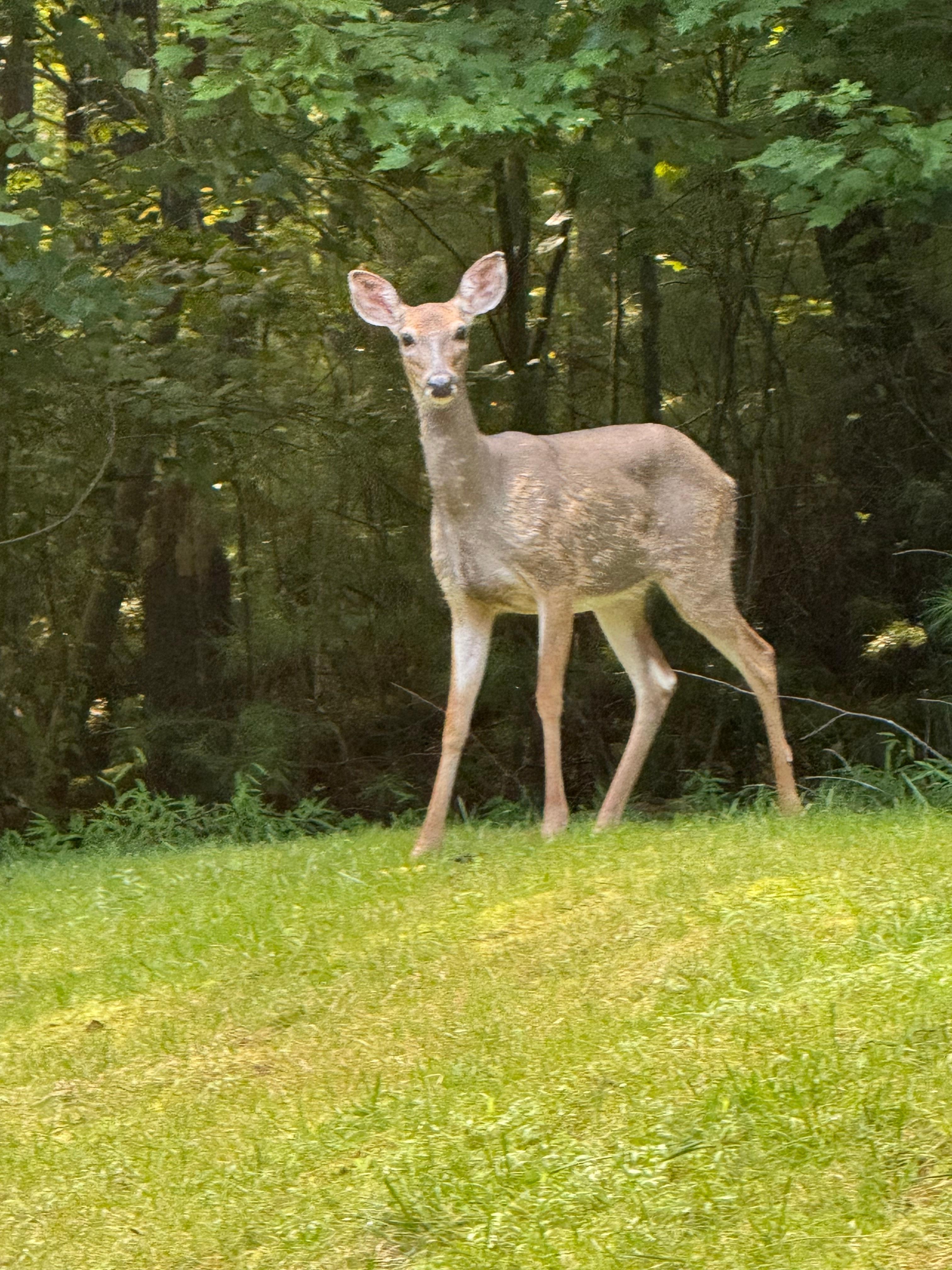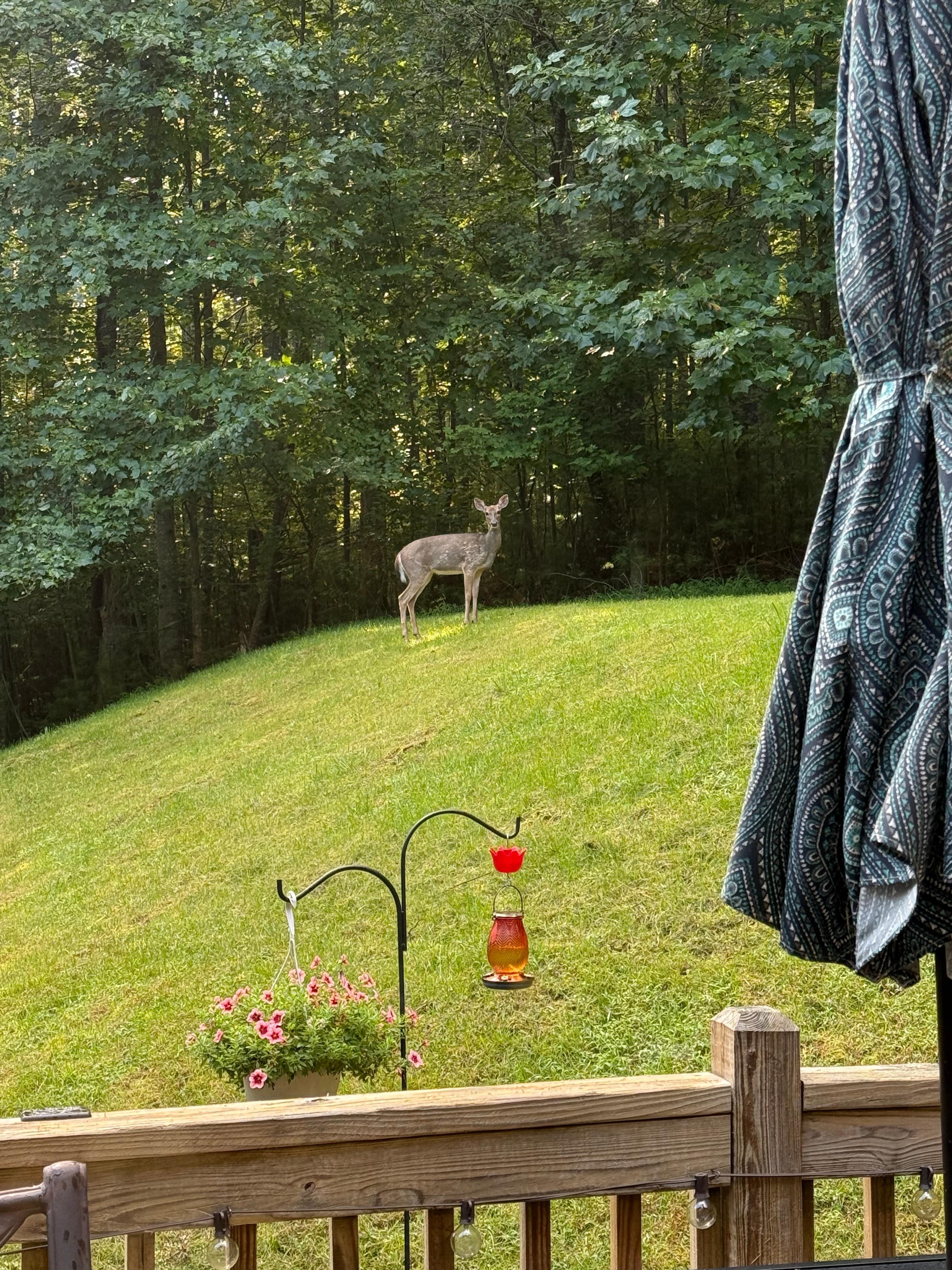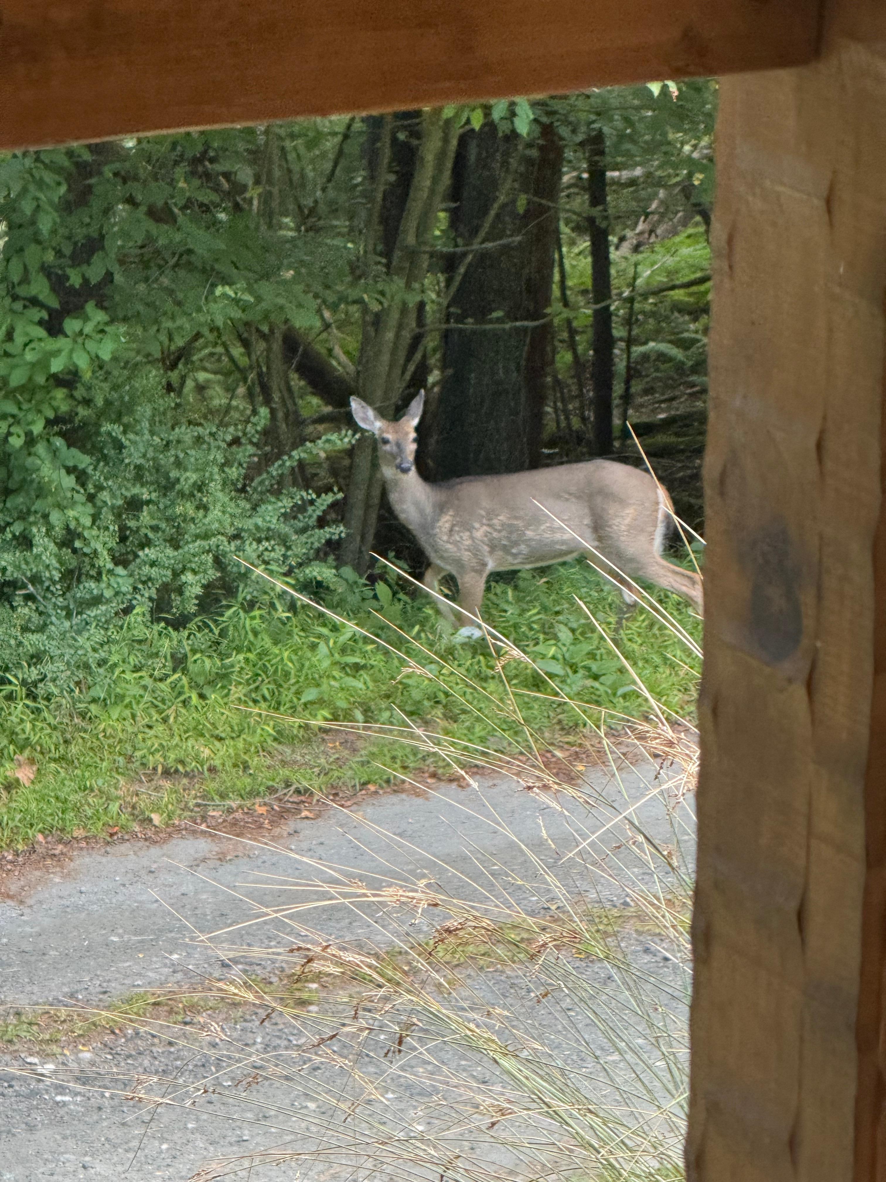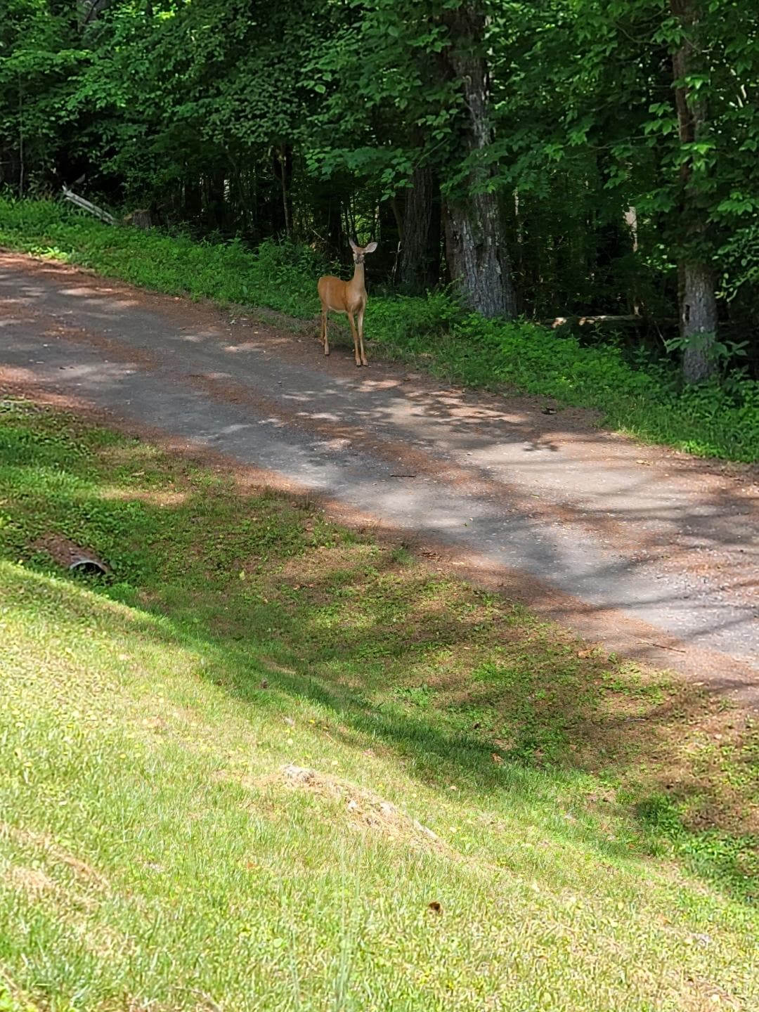 The retreat is close to nature with birds and deer all around the cabin. There are quiet country roads to walk your dog up the mountain or down to the river. No worries if it rains, the front porch is covered and overlooks the trees.