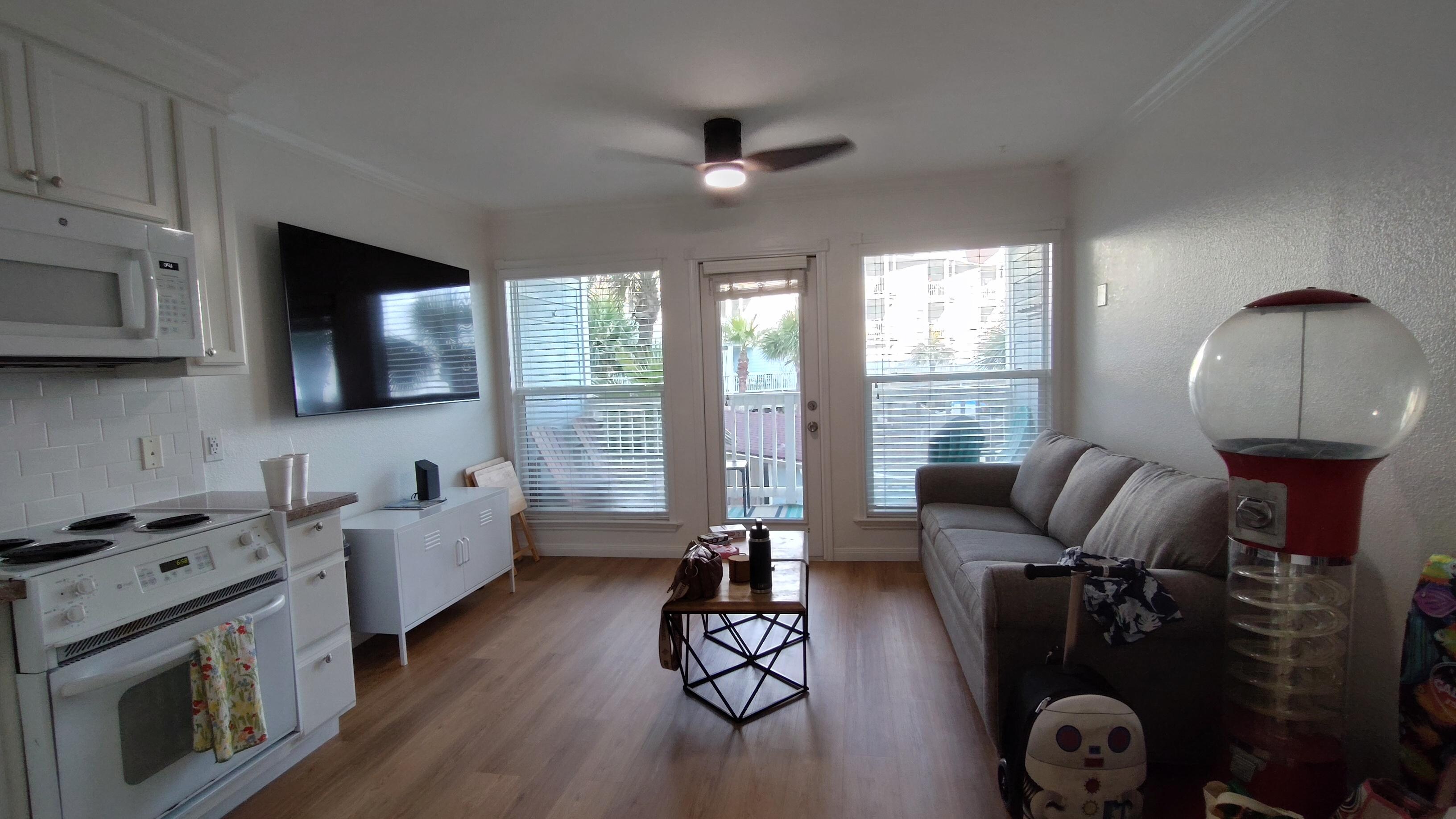 The majority of the condo is freshly painted in a clean 'gallery' white, while my daughter chose a (big) splash of playful yellow for the bunkbeds and the hallway that they're located in. Although everyone's favorite part of Galveston is the beach, we hope to give you a clutter-free place to come home to.
