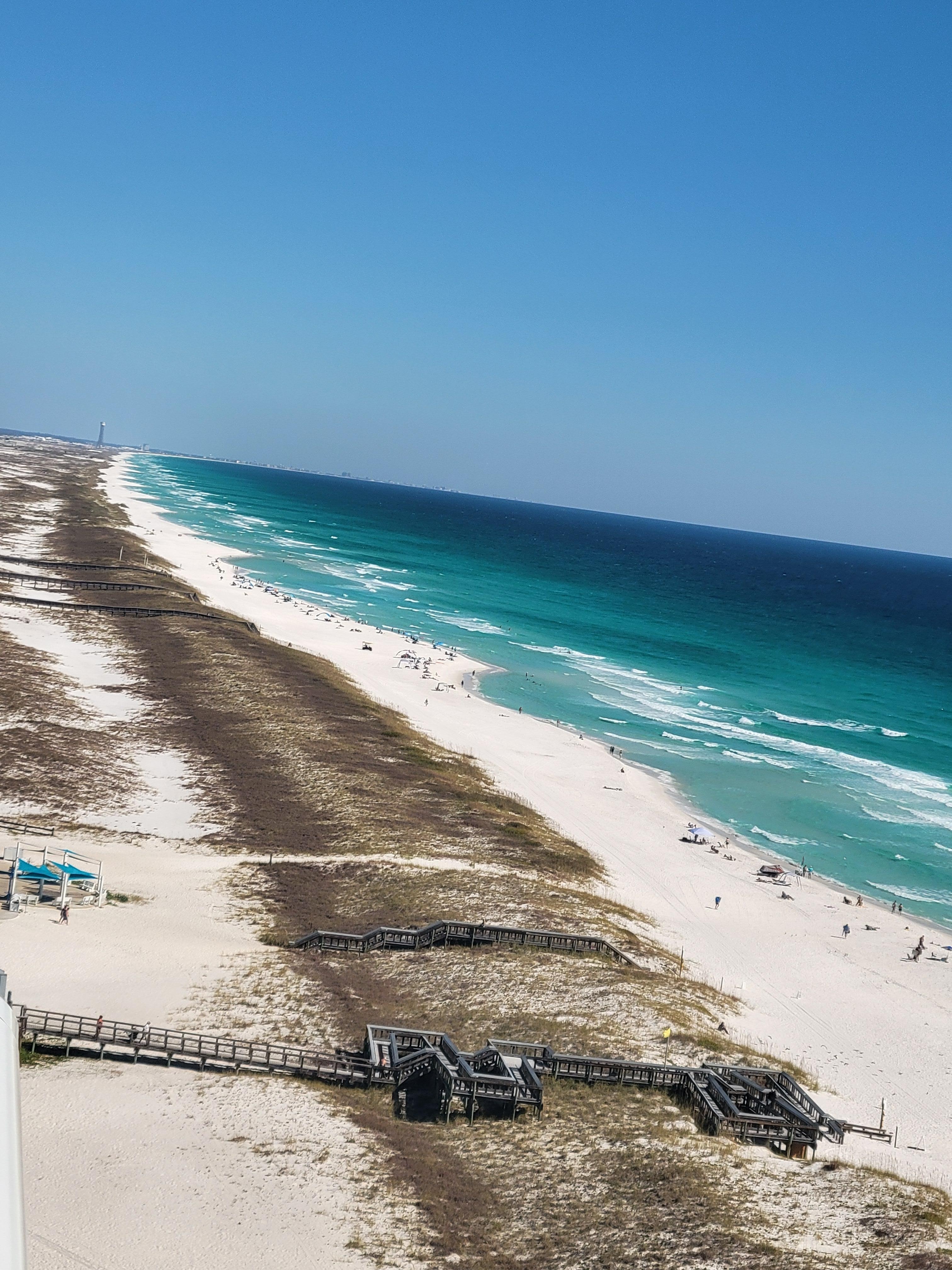 Your “Paradise Vista” awaits! This condo has it all – whether you are looking for a romantic getaway or a vacation for the whole family. Come relax in this Summerwind condo with your very own fully equipped kitchen with granite countertops, cozy living room, and full size washer and dryer, located on Navarre Beach, Florida’s Panhandle on the beautiful Emerald Coast. Paradise Vista offers free WiFi, sleeps 6, with a king bed in the master bedroom, 2 twin bunkbeds built into an alcove in the hallway and a queen sleeper sofa in the living room. This condo has one full, and one half bath. From your unobstructed Gulf front balcony, enjoy watching the sunrise while sipping that first cup of coffee. This balcony has a view like no other overlooking the Navarre Beach fishing pier, Santa Rosa Island and the sandy white beaches of the breathtaking Gulf of Mexico. Paradise Vista is located on the 14th floor at the Inn at Summerwind. Summerwind Resort which offer three outdoor pools, three hot tubs, three fitness centers, a grilling area and a private walkway to our beautiful Emerald Coast beach on the Gulf of Mexico. We will SEA you at the beach! **You must be at least 25 years of age to rent this property. We also have a 1 to 4 ratio (one adult over 25 for everyone under 25) except during Spring Break. At that time, we require 1 adult over 25 for every 2 guests under that age.**