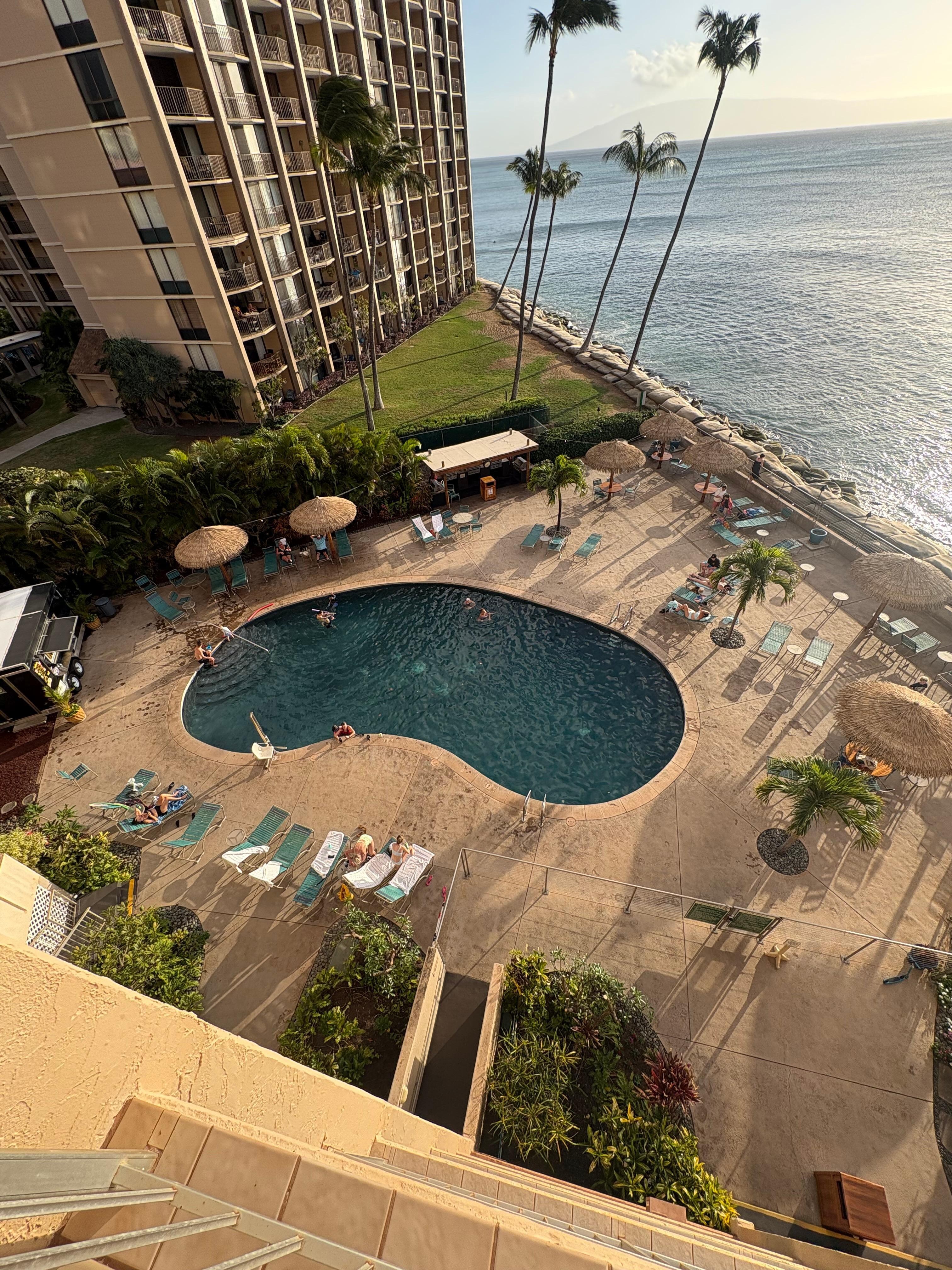 Private lanai with ocean and pool views — perfect for morning coffee or sunset relaxation.