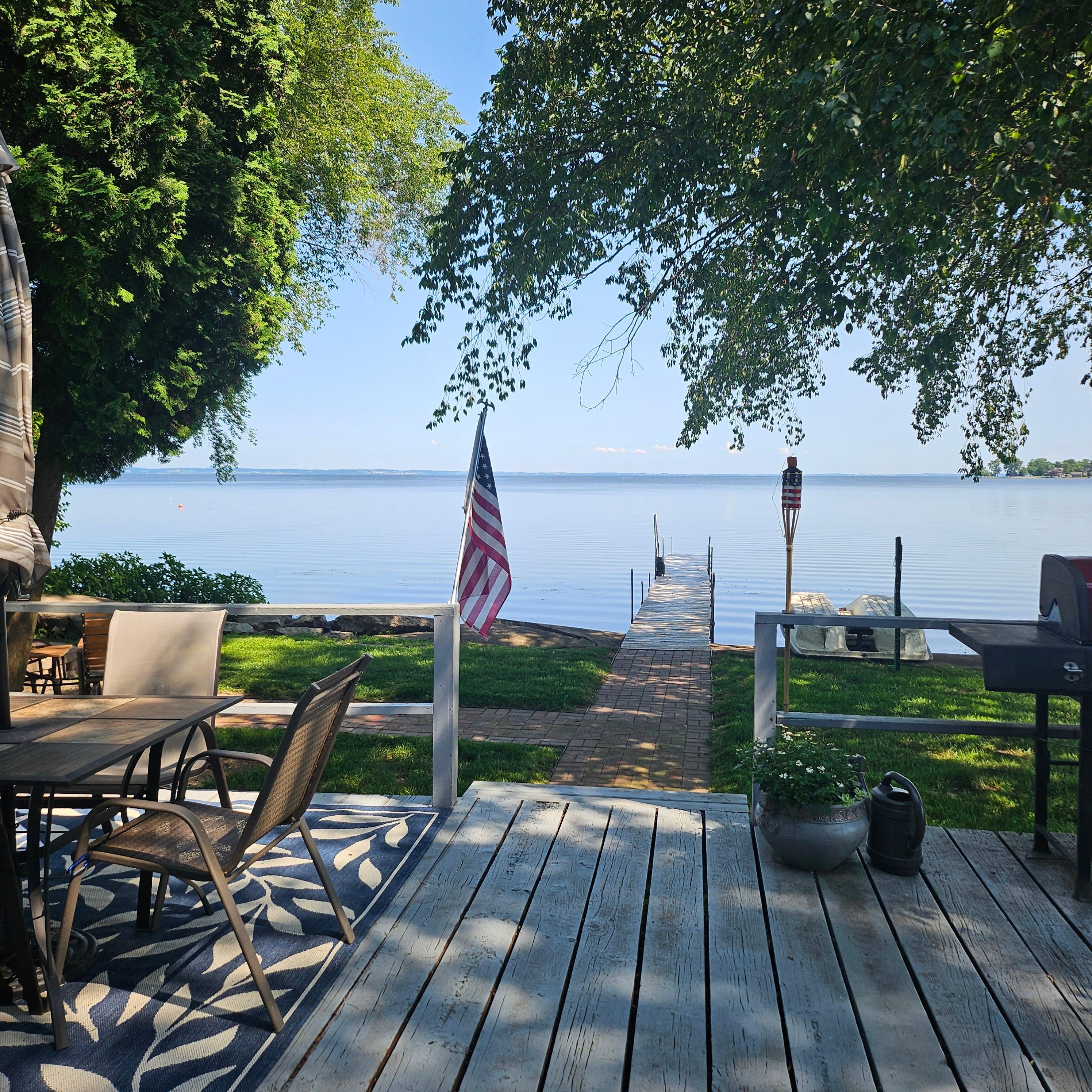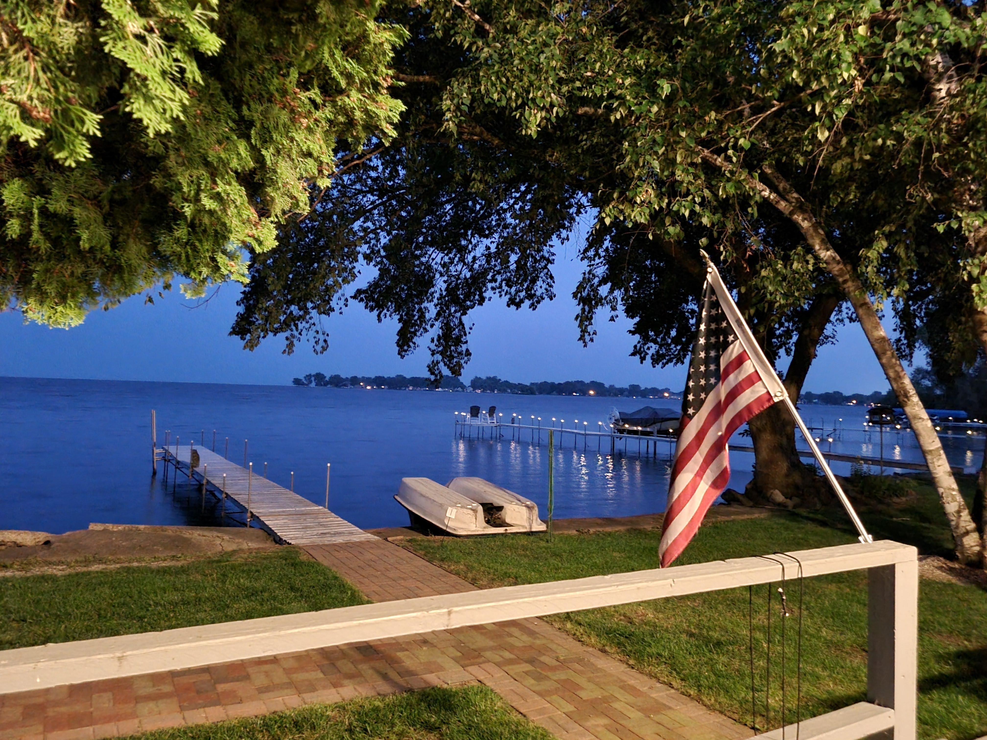 This fully equipped and furnished one story, 2 bedroom bungalow (with a twin hide-a-bed in the living room area) will appeal to your ideas of a relaxing vacation! If you desire internet, this home is so equipped and has Wi-Fi! Just bring your clothing and personal care items! The East facing deck off the living room lets you watch the gorgeous sun AND moon rises over beautiful, relaxing Lake Winnebago! A 40' dock for you to fish from, or step into the water from it's ladder for swimming! We STRONGLY RECOMMEND WATER SHOES because of the zebra mussel shells. We provide both a pedal boat and kayak for your waterfront use at no extra charge! Complete with flat screen TV's in the living room and both bedrooms, your entertainment needs will be met. There is also a large side yard for activities such as croquet, badminton or volleyball, when you might be taking a break from your waterfront activities. The kitchen is fully equipped, stocked with anything needed for your culinary desires. There is an electric glass top range, both coffee pot and single serve pod coffee makers, double door refrigerator/freezer with water and ice dispensers, built-in dishwasher and microwave too! In the event you need to wash clothes, there is a 1st floor washer and dryer for your use. So............make your reservation for a relaxing stay at "Shorewood". It is directly west of and across the lake from our other rental called "Twilight", and just a few minutes from the city limits of Oshkosh, WI. Close to boat ramps, parks, grocery stores and restaurants! Sorry, Strictly, no pets allowed in consideration of future guests who may have allergies. Strictly, no parties or events allowed!