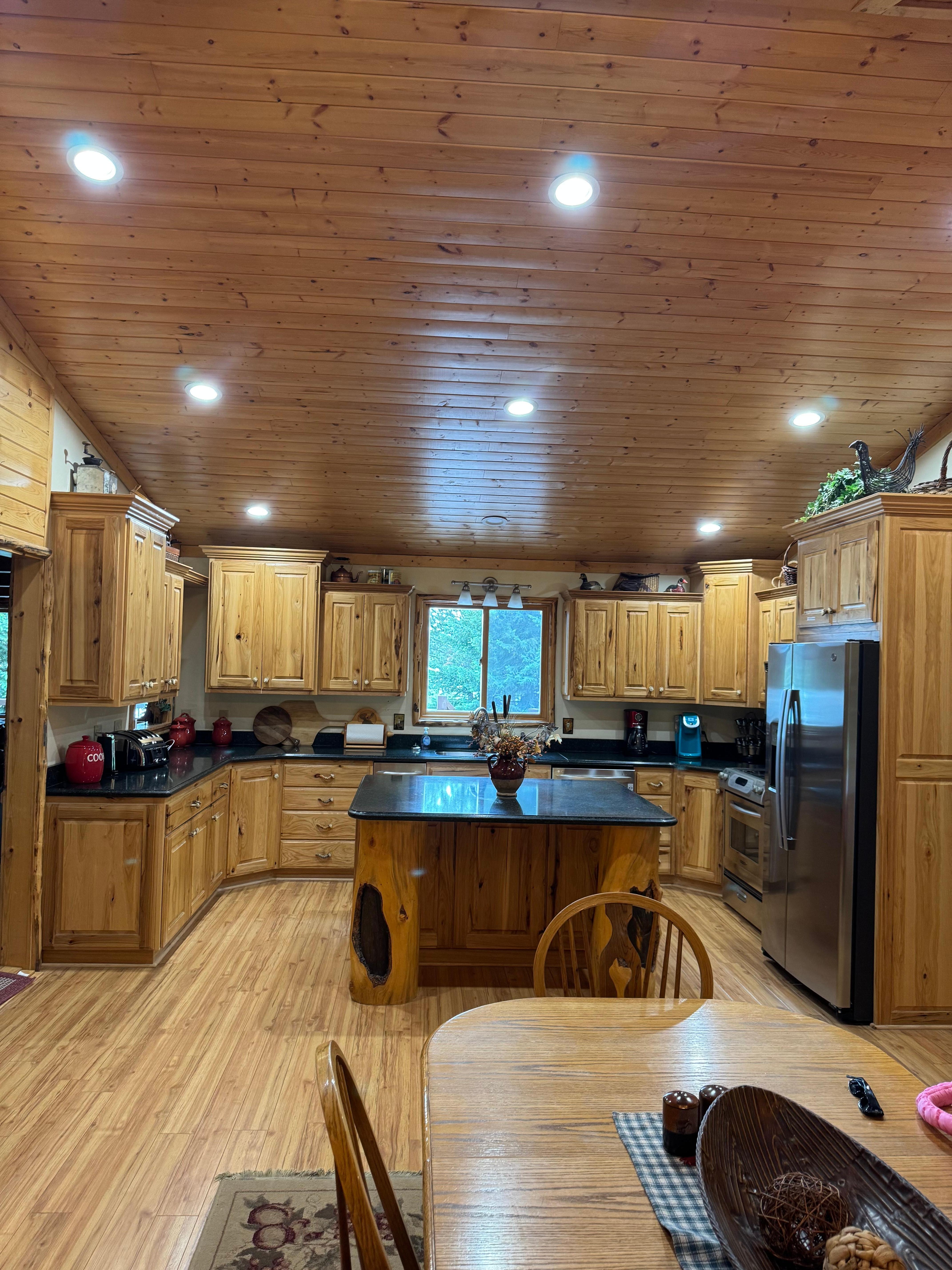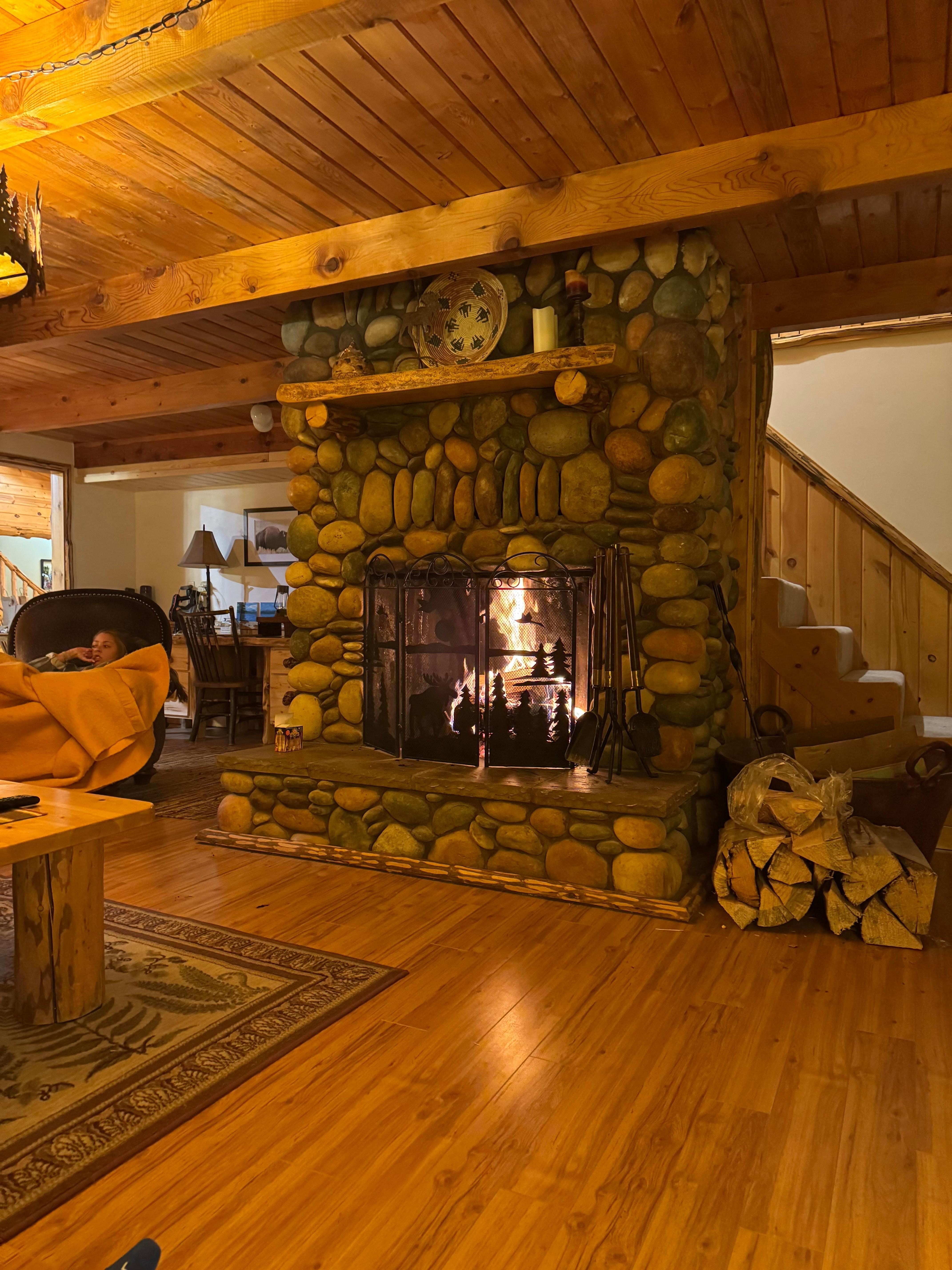Welcome to O’Toole Haven, a luxury lakefront cabin with your own private U-shaped dock, two waverunner ramps and private bay behind the security of the gated community on Bill’s Island. With over 5,500 beautifully appointed square feet of luxury cabin living, our Haven is nestled in the privacy of the pine tree forest with stunning views and lake front access to Island Park Reservoir. Our air conditioned resort-like feel is perfect for large families, large gatherings, family reunions or whatever your needs are, comfortably accommodating 25 people with 7 private bedrooms, 2 bunk rooms and 6 1/2 bathrooms, a large living room, a huge game room and a fully furnished spacious kitchen with two ovens and both a main level and upstairs laundry. There is a downstairs bedroom with King bed, bath with large shower, laundry room with washing machine and 2 dryers and large storage area. The master bedroom is away from the noise and has a king bed with private balcony. The master bath has a shower and a room off of the master with two twin beds. There are 4 bedrooms upstairs with King beds, three with private balconies and each with their own private Bathroom. there is also a 1/2 bath upstairs just off the family room with stackable washer and dryer. There is also 2 large bunk rooms with 3 triple-deck bunk-beds (sleeps 9) provides the perfect arrangement for the kids/cousins to enjoy the Bunk Rooms while adults sleep peacefully in their private bedroom. Three smart Tv’s 85", 75" and a 60" and DVD player. A beautiful romantic river rock fireplace in the main level Living room and a huge upstairs Game/Play/Media Room that also has ping-pong, foosball and a card table. Only 25 minutes to West Yellowstone. Cleaning procedures have been implemented for your safety and peace of mind. From arrival to departure, O’Toole Haven will touch on every sense. From the beautiful panoramic vistas on the back porch and back yard of the lake and the mountains beyond to the tasty catch-of-the-day or post-boating burgers and hot dogs that are grilled on the 6-burner barbecue grill. From the warmth and friendship sitting by the lakeside fire pit while roasting s’mores and telling campfire stories to the peaceful sounds of birds, crickets and distant boats filled with joyous sounds of kids. O'Toole Haven is the place to create lifetime memories!