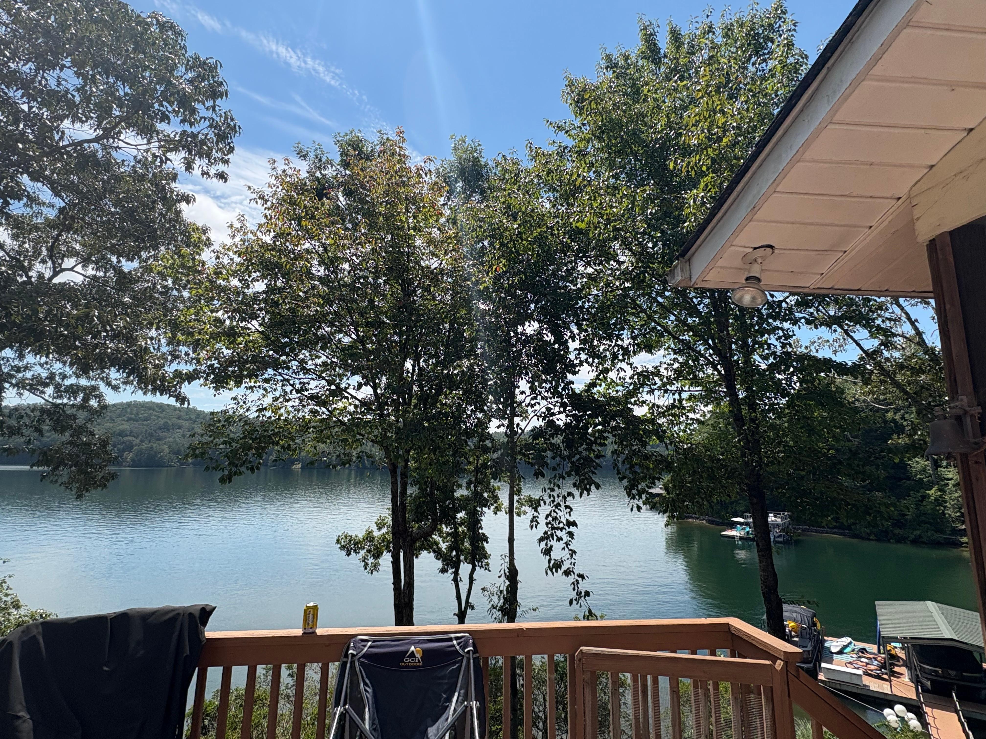 The lower level is finished with the 2 bedrooms, full bath, bunk area, air hockey table, Foosball table, and an entertainment area with TV and DVD/VCR. There is a lower deck area with porch swing off the lower level. Views of the lake and boat dock.