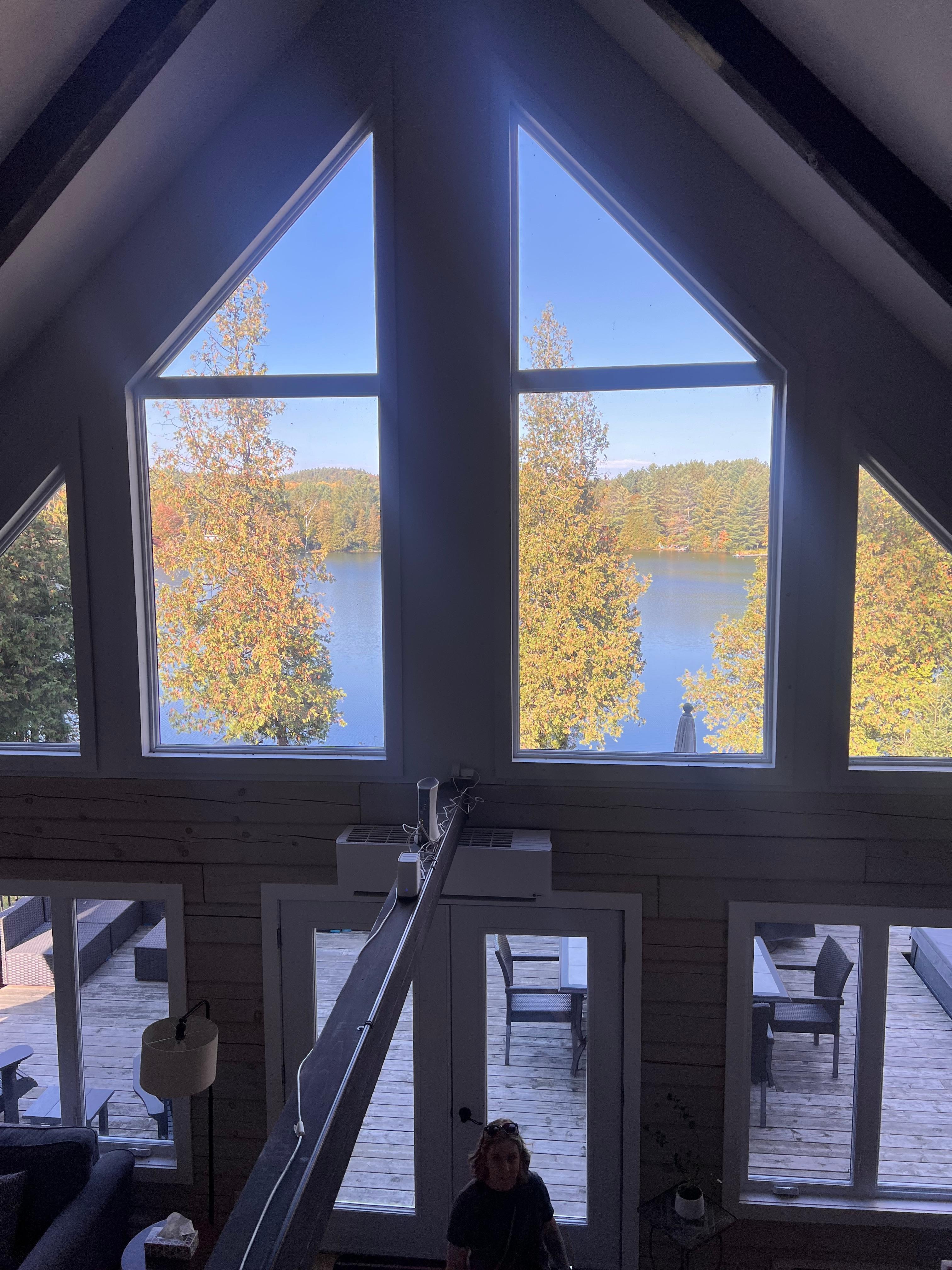 As you enter the main cottage, you will be greeted by cathedral ceilings, large airy windows facing the lake, and beautiful wooden beams.
