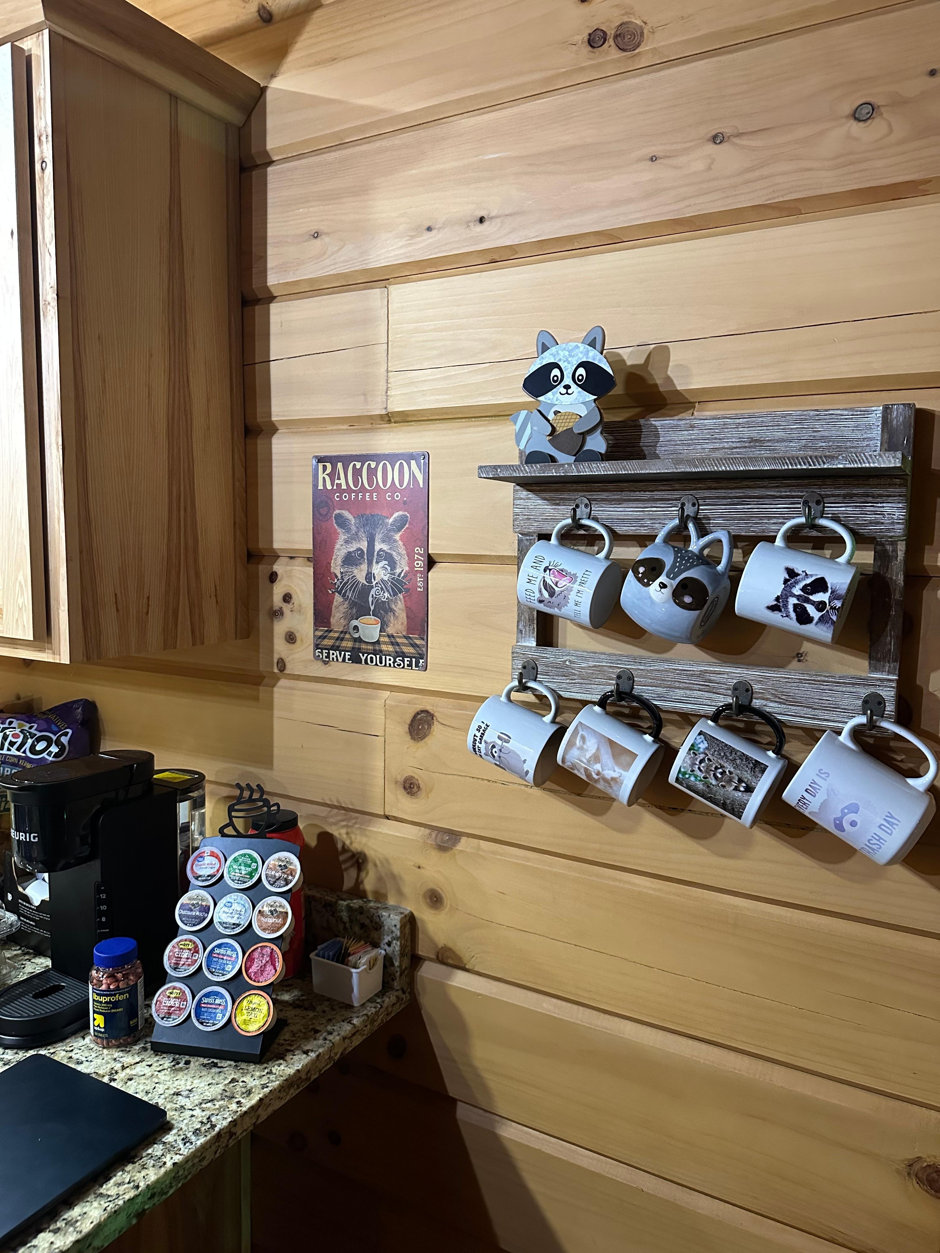 Close to everything - away from it all! The Raccoon Den is a newly built custom log cabin surrounded by the woods of Raccoon Mountain. Enjoy being near everything Chattanooga has to offer (15 - 20 min from downtown, Riverwalk, Tennessee Aquarium, Creative Discovery Museum, Ruby Falls, Incline Railway, Rock City, Point Park; 10 min from Walmart and restaurants) while relishing in the peaceful setting the secluded, wooded atmosphere provides at this private retreat; complete with hot tub, indoor (seasonal) and outdoor gas fireplaces, large covered decks, high-speed wi-fi, large smart TV (Netflix provided), and 240v outlet in driveway for electric vehicle charging (guest provides the appropriate connection for their car). Minimal check-out instructions. Our family has loved vacationing in log cabins over the years and we have thought through every detail to provide an optimal vacation experience for you and your family.