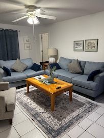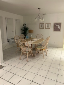 Welcome to this cozy 3-bedroom, 2-bathroom abode, complete with tiled flooring in the main living spaces. Enjoy the convenience of a TV in both the living room and the master bedroom. Take a dip in our solar-heated pool - just bear in mind, it might not be quite warm enough for some in the winter months. And don't forget the gas BBQ grill situated on the lanai, perfect for those summer cookouts.