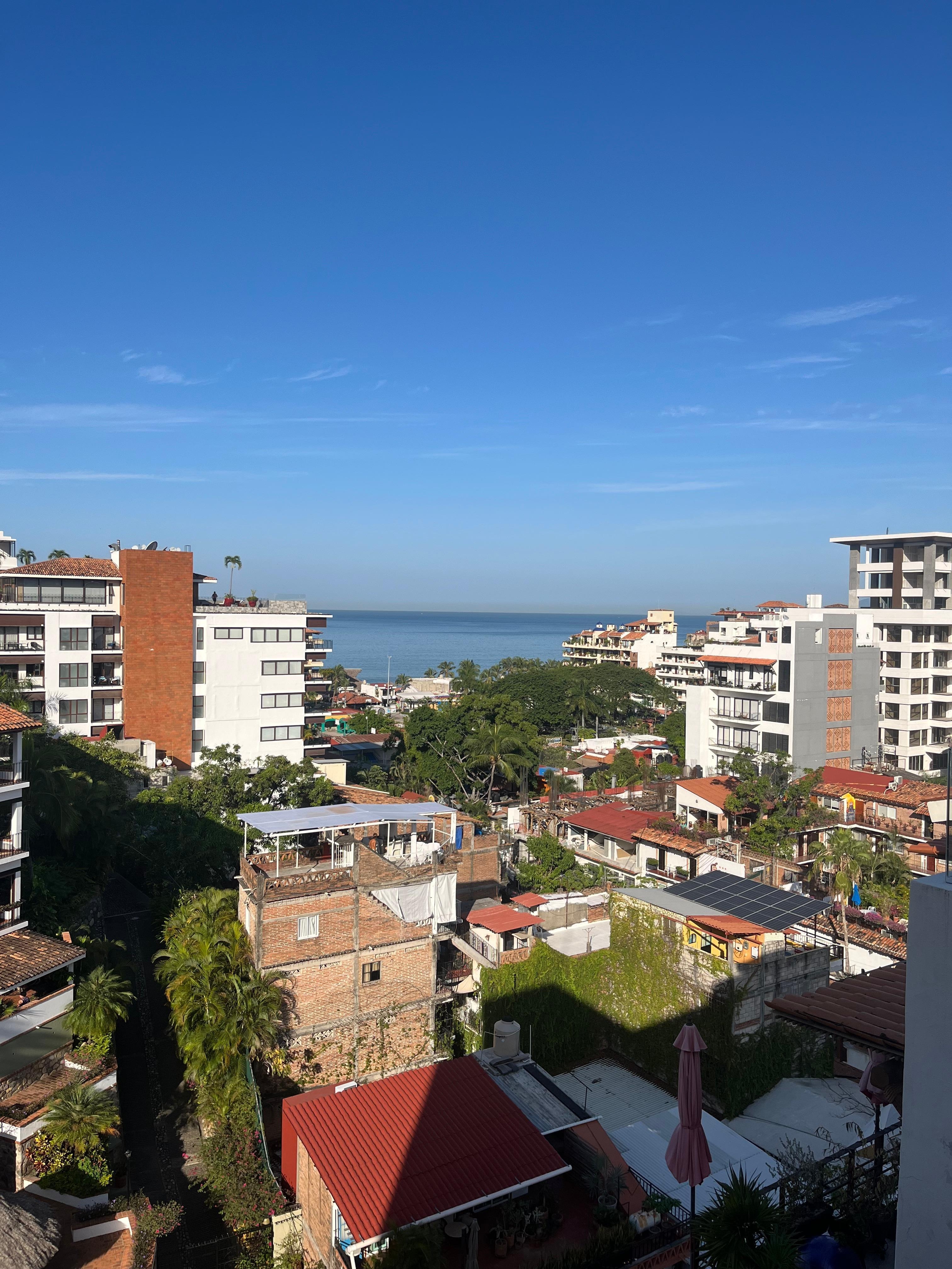 Welcome to CASA BUGAMBILIAS in beautifull V399, our warm Mexican colonial contemporary style home for your vacation. Location Location Location ! Romantic Zone, Right on restaurant row, Only 3 blocks 5 to 10 minutes nice walk to Los Muertos beach, no hills to climb, walking distance to all that Old Town offers. Views Views Views and Views !! Breath taking 360 degree views of ocean, bay, mountains from what will become the most sought after rooftop terrace in PV where you can enjoy a heated infinity pool, jacuzzi, covered gazebos with fan lounge and table areas with lighting. Experience our home feeling condo with a warm mexican contemporary decor, fine furnishing and artwork, quality linens and towels, bedroom window and living room private balcony both offering a nice background Amapas mountain view, 24 hr onsite security, state of the art upscale construction, centrally located in Old Town steps away from a bakery, famous Freddy Tucan breakfast and lunch restaurant, on the same block you will find a great wine store, surrounded by numerous popular restaurants, cafés, sports bar, shops and art galeries. Night clubs are also within a safe walking distance of a few blocks. Lockup your valuables in our full size floor affixed safe with modifiable digital access code. Optional daily maid service available at a reasonable fee.