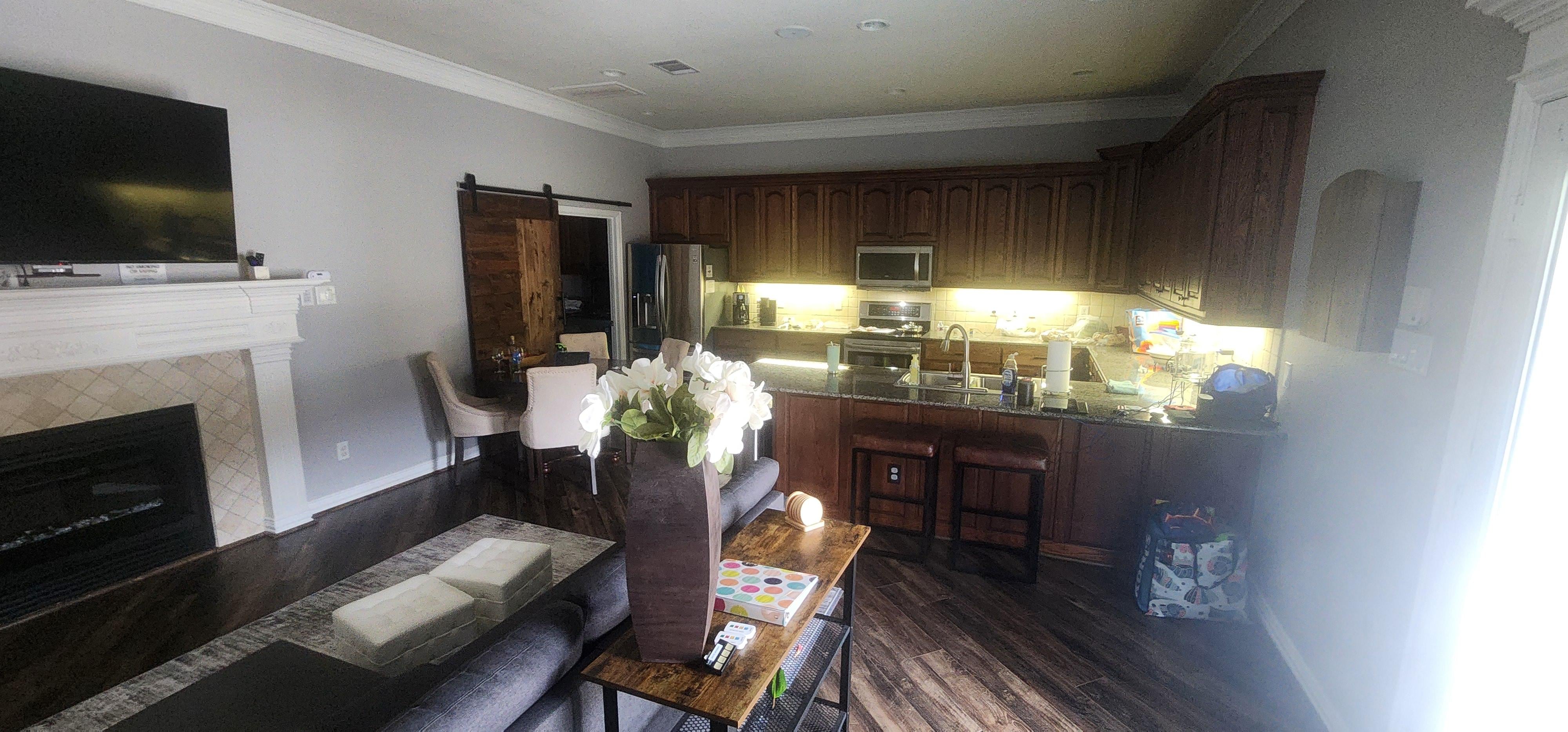 The living room boasts a large flat screen TV for kicking back and watching your favorite shows using your preferred streaming service. There is also a game table where you can enjoy dominoes, poker, or your favorite card game.