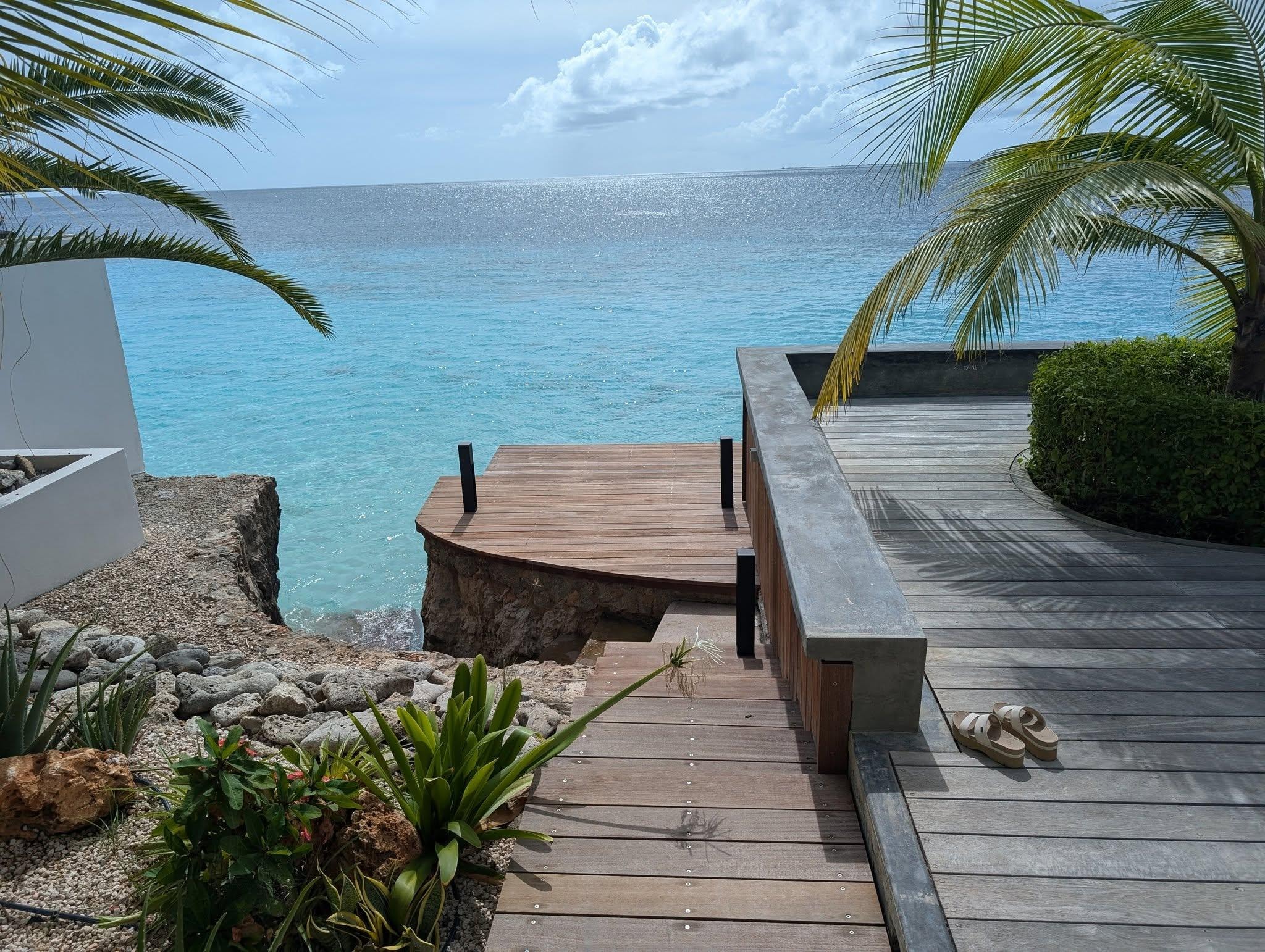 The villa also has a stone staircase with which you can walk directly from the garden into the clear blue sea and admire the underwater world of Bonaire.