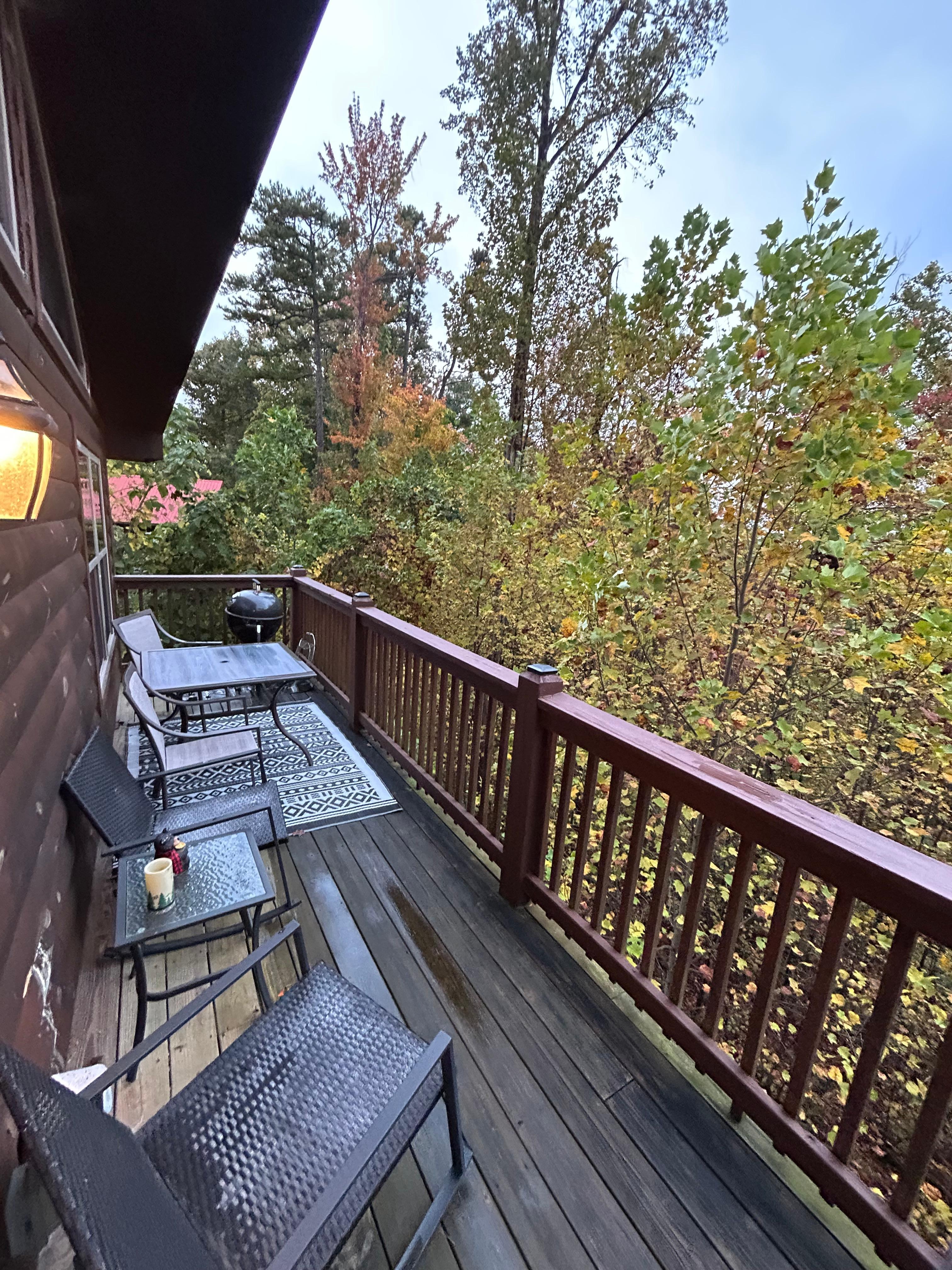 Looking for a romantic getaway (honeymoon/anniversary) or a small family vacation (can sleep 2 adults and 2 small kids), Bear's Escape cabin will offer you the rustic elegance you are looking for. Conveniently located between Gatlinburg and Pigeon Forge, only 1.2 miles off of the main parkway, this cabin is nestled into the side of a mountain in the heart of the Great Smoky Mountains. With a peaceful private mountain setting , this cabin has two back decks featuring comfortable seating, rockers, a grill, outside dining, and a large bubbly hot tub. While on the deck you will feel completely surrounded by nature, a million miles from the bustle left behind. This beautifully decorated cabin offers custom log furniture, a seasonal gas fire place, a full kitchen, large HD TVs (smart apps), secure High-Speed Internet, pool table, foosball and air hockey table, and a futon. The Master Bedroom is designed for romance with a luxurious King bed, cozy fire place, a two person Jacuzzi tub, and a full bathroom that has a standup shower. Bear's Escape Cabin is the perfect place to unwind for a well deserved getaway.