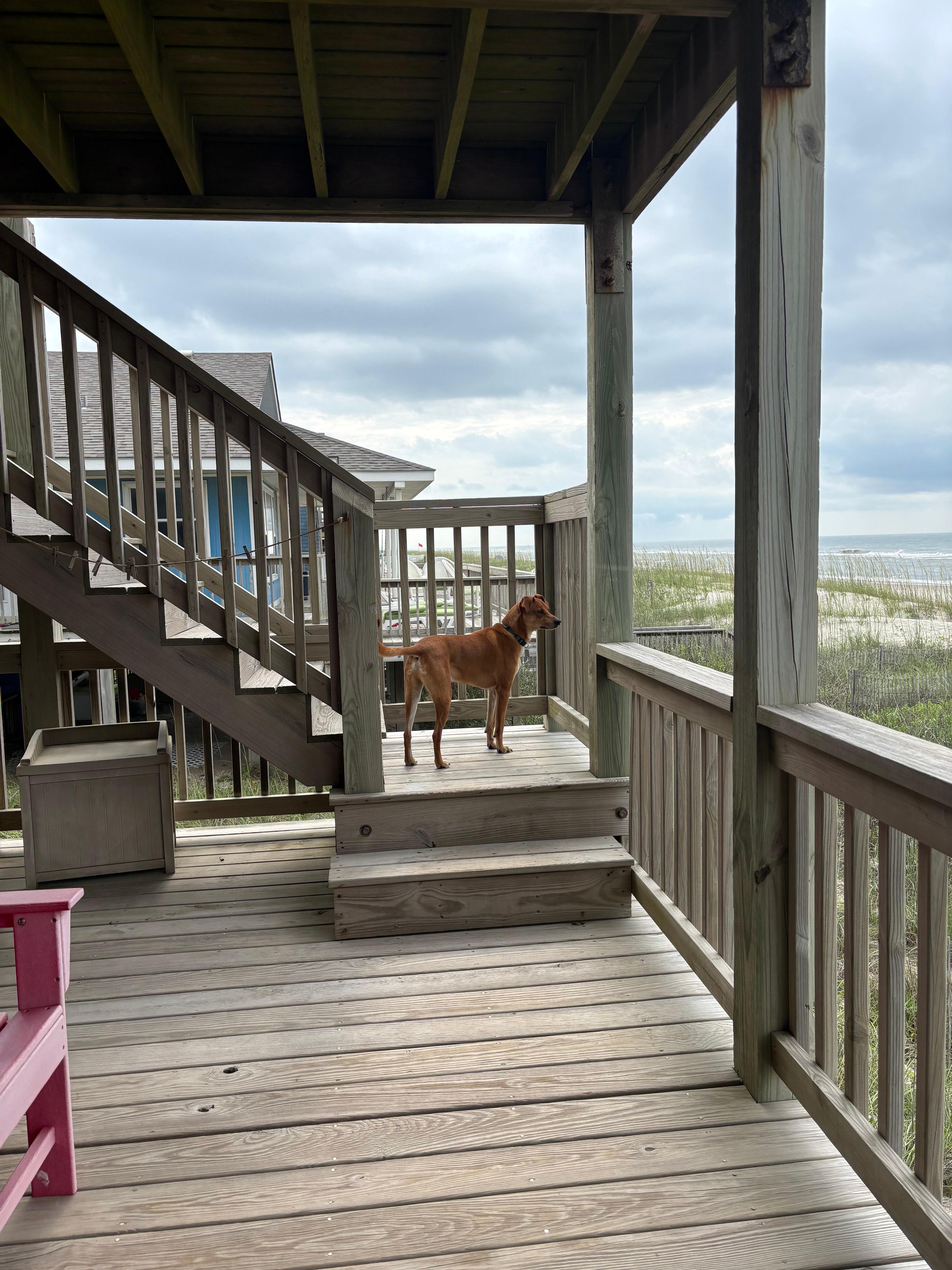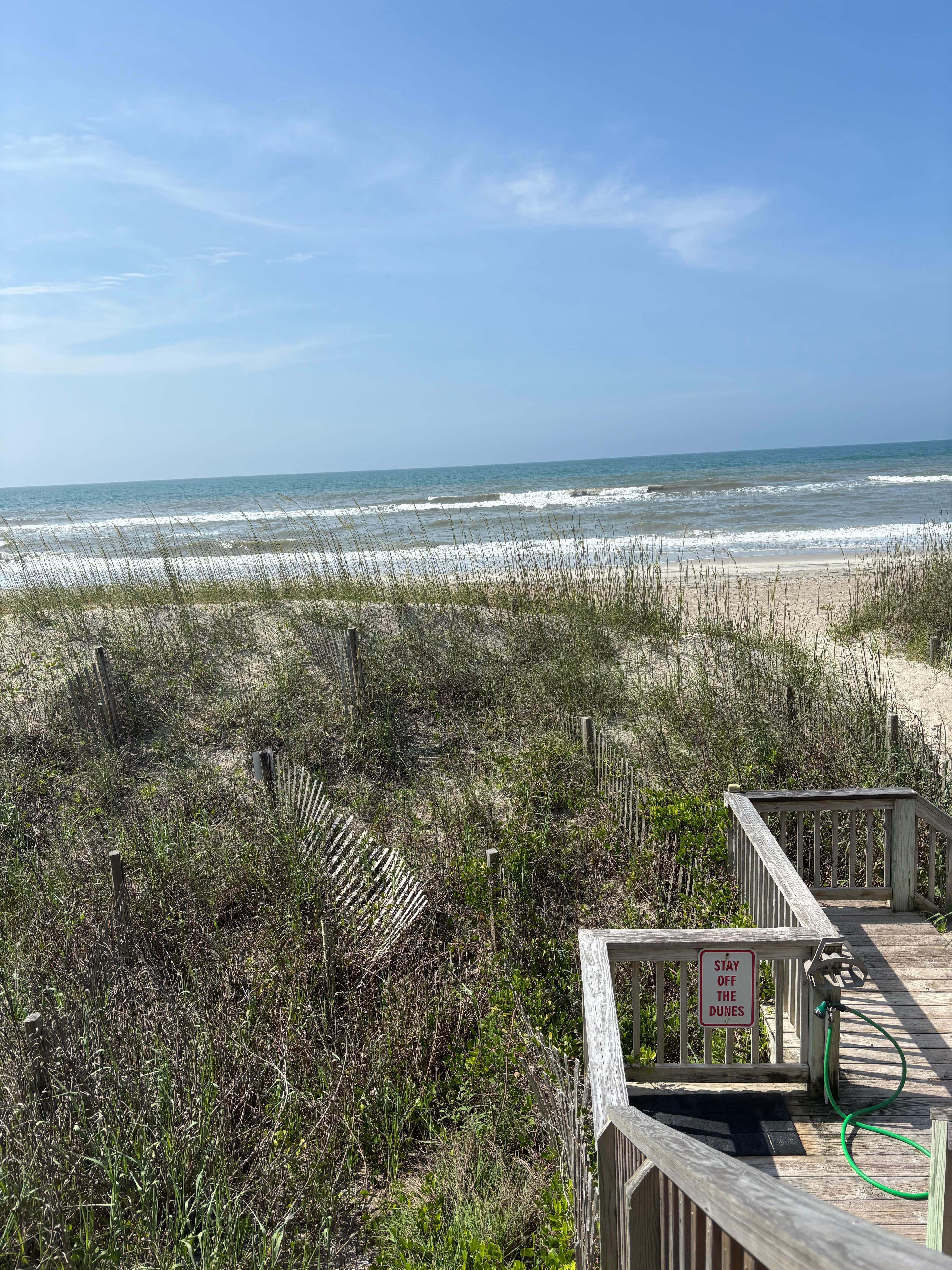 o This duplex sits taller and closer to the ocean than its neighbors which makes for amazing views! One can see all the way from Indian Beach to the Point from the top deck. We've discovered that by being closer to the ocean (while not giving up good beach depth) life with kids and especially little ones is just much easier! You can see your kids easily from the deck if you'd like to have a drink or you just take a few steps and you are right on the beach with them. There is a large outdoor shower with hot and cold water outside for cleaning off all the sand that seems to get everywhere!