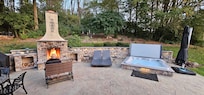 Relax on the loungers by the outdoor fireplace after unwinding in the hot tub while smelling your steak on the propane grill.