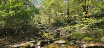 You may see wildlife while soaking in the hot tub, sitting on the deck or patio, or exploring the woods. There are several trails in our woods and a peaceful area by the creek to relax in a hammock, lay on the loungers, or sit on the swing while enjoying the stream or a campfire.