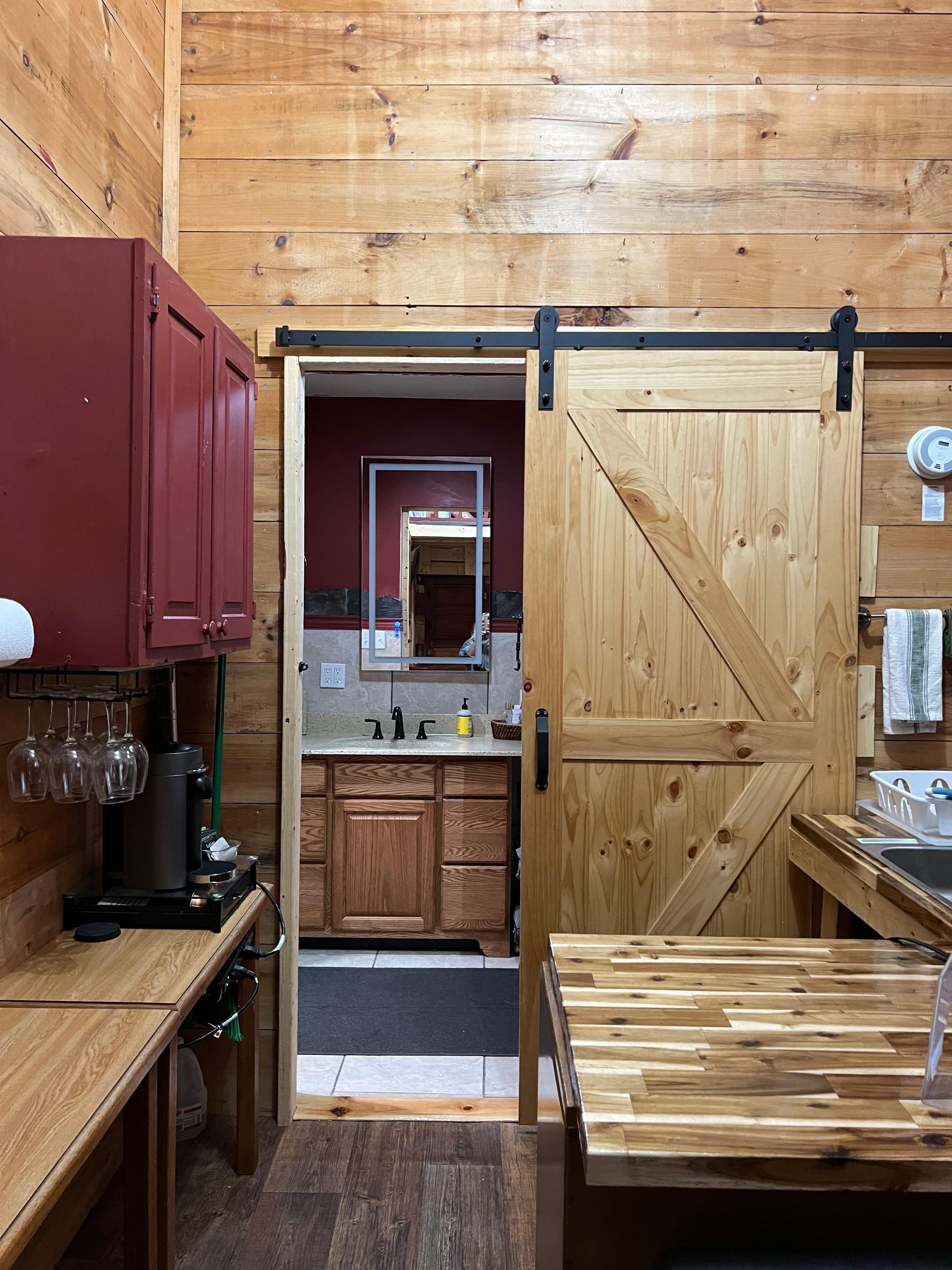 You will enjoy you private and superbly comfortable private bath suite; complete with tub and shower: vanity and heatdd and lighted mirror; and odor-free state of the art incinerating toilet. ensuring a fabulous night's sleep for all guests. The kitchen includes a mini fridge, sink, dishes, silverware and a set of marshmallow sticks. There is a Nespresso Vertua coffee maker, microwave and toaster oven and a fire pit with a grill for cooking. . Plus, there is an additional living room space with a cozy electric fireplace and propane heat in the winter.