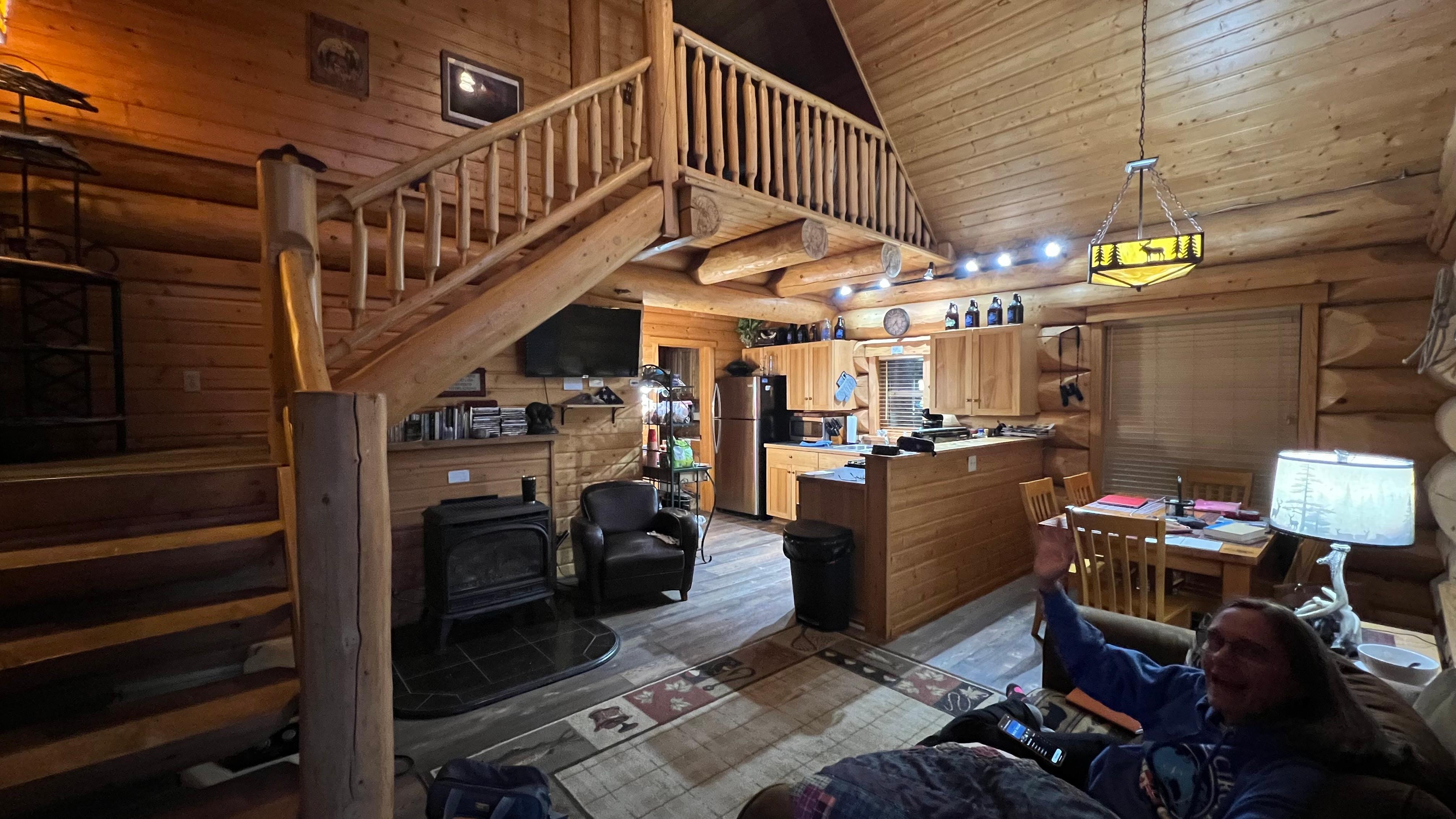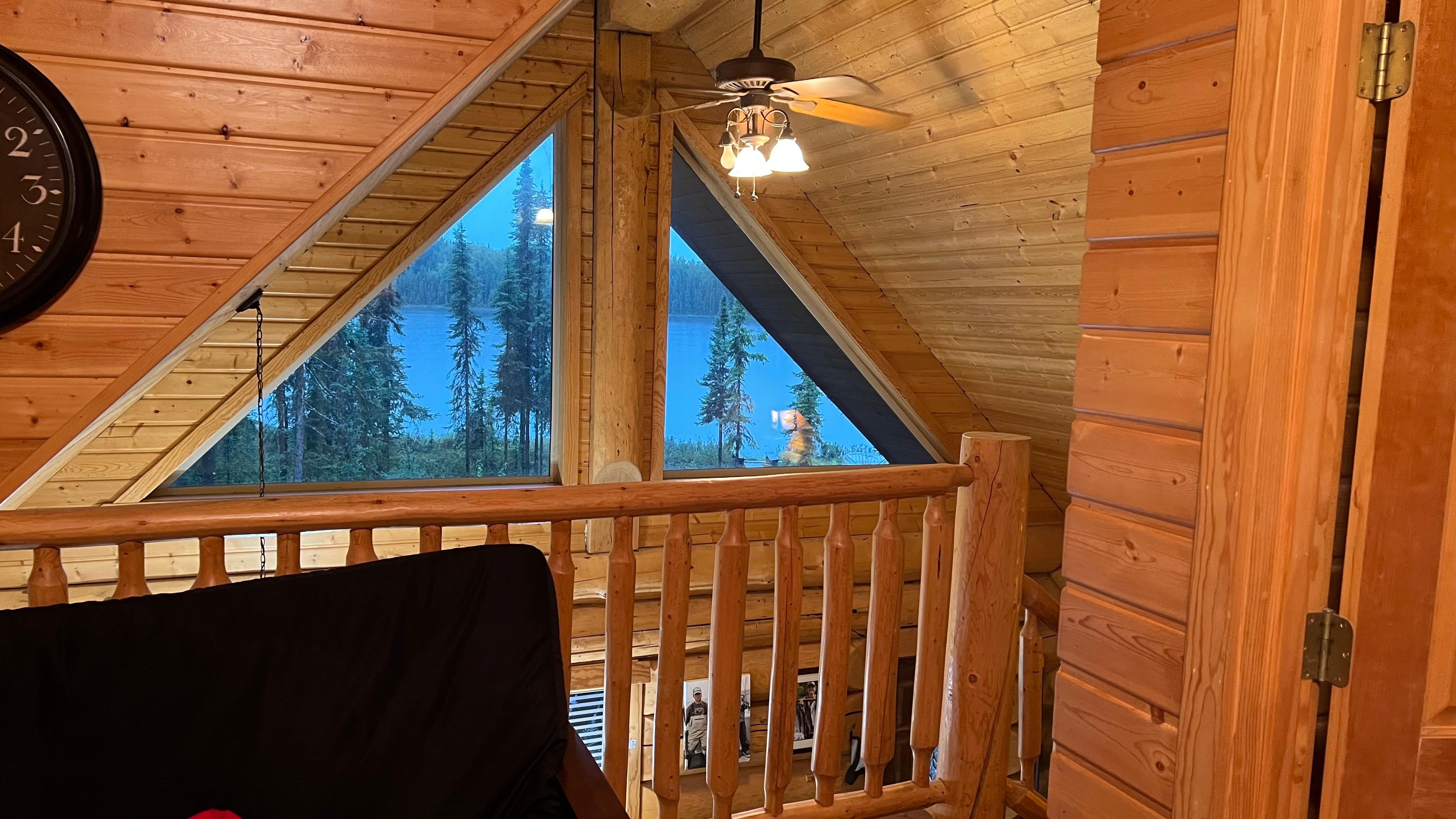The cabin has been decorated to make you feel warm and cozy, even on a chilly Alaska evening. Full log construction and knotty pine interior give a rustic feel. This wonderful log cabin sleeps 4-6 comfortably, with a downstairs kitchen, bedroom, bathroom, living area, and an upstairs bedroom and loft. This lake front setting is simply awesome.