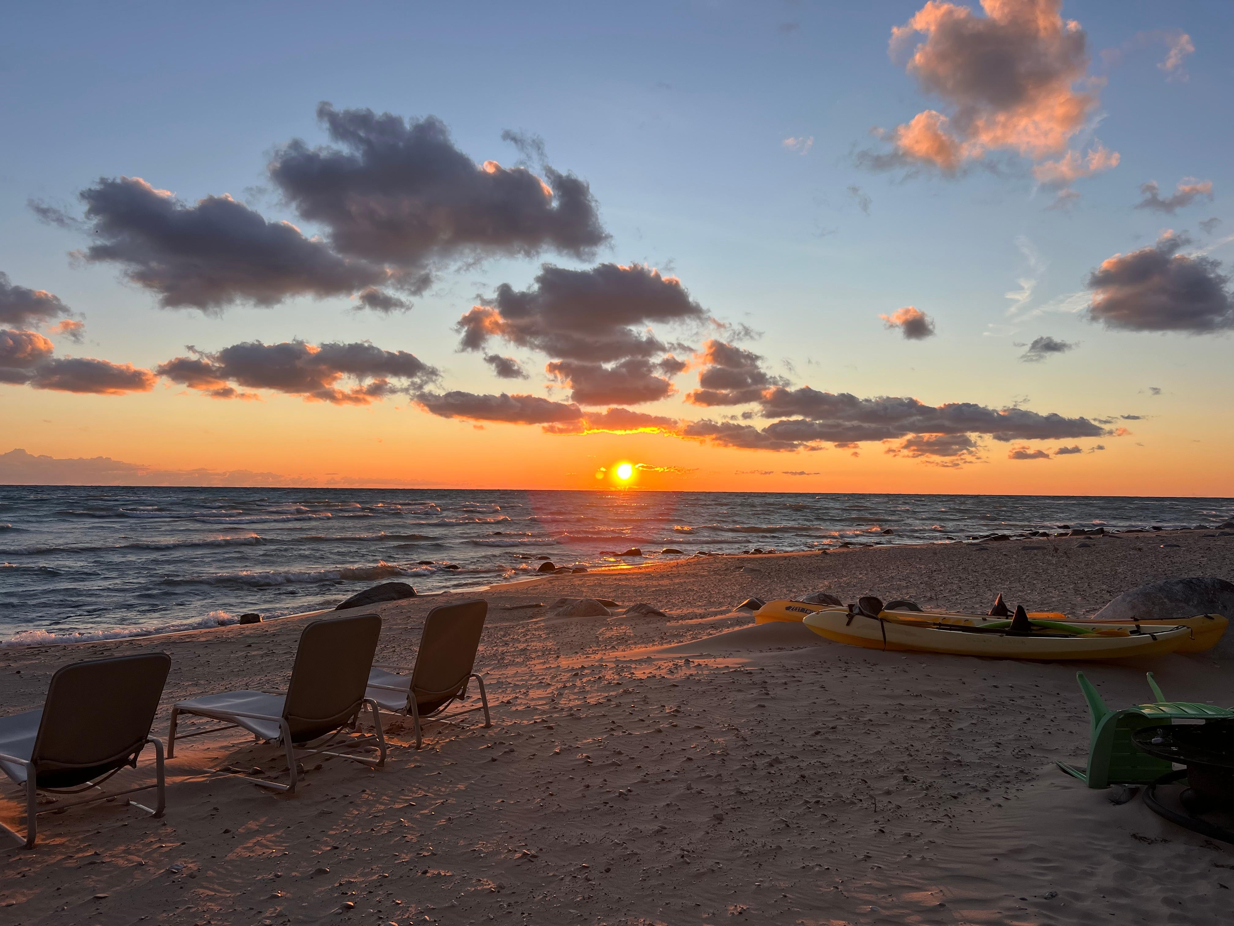 This property is wonderful! It is the perfect getaway! Located right on the beach, you wake right up to a view of Lake Michigan. You can hear the waves all throughout the house with the windows open. It provides the perfect amount of privacy without compromising the view. We enjoyed the ease of check in/out, the cleanliness, the extra towels/blankets provided, the rocking chairs on the deck are SUPER comfortable and the perfect spot to keep an eye on the grill and watch your family on the beach/watch the waves and there are also two 2-person kayaks that were tons of fun. You are able to walk along the beach going either way for what seems like miles, we personally spent several hours each of our 5 days there and we enjoyed it each and every time and something always kept us interested. We were able to find all sorts of different rocks and even found a few Petoskey right on the beach of this very property! We cannot wait to stay here again and definitely recommend this property!