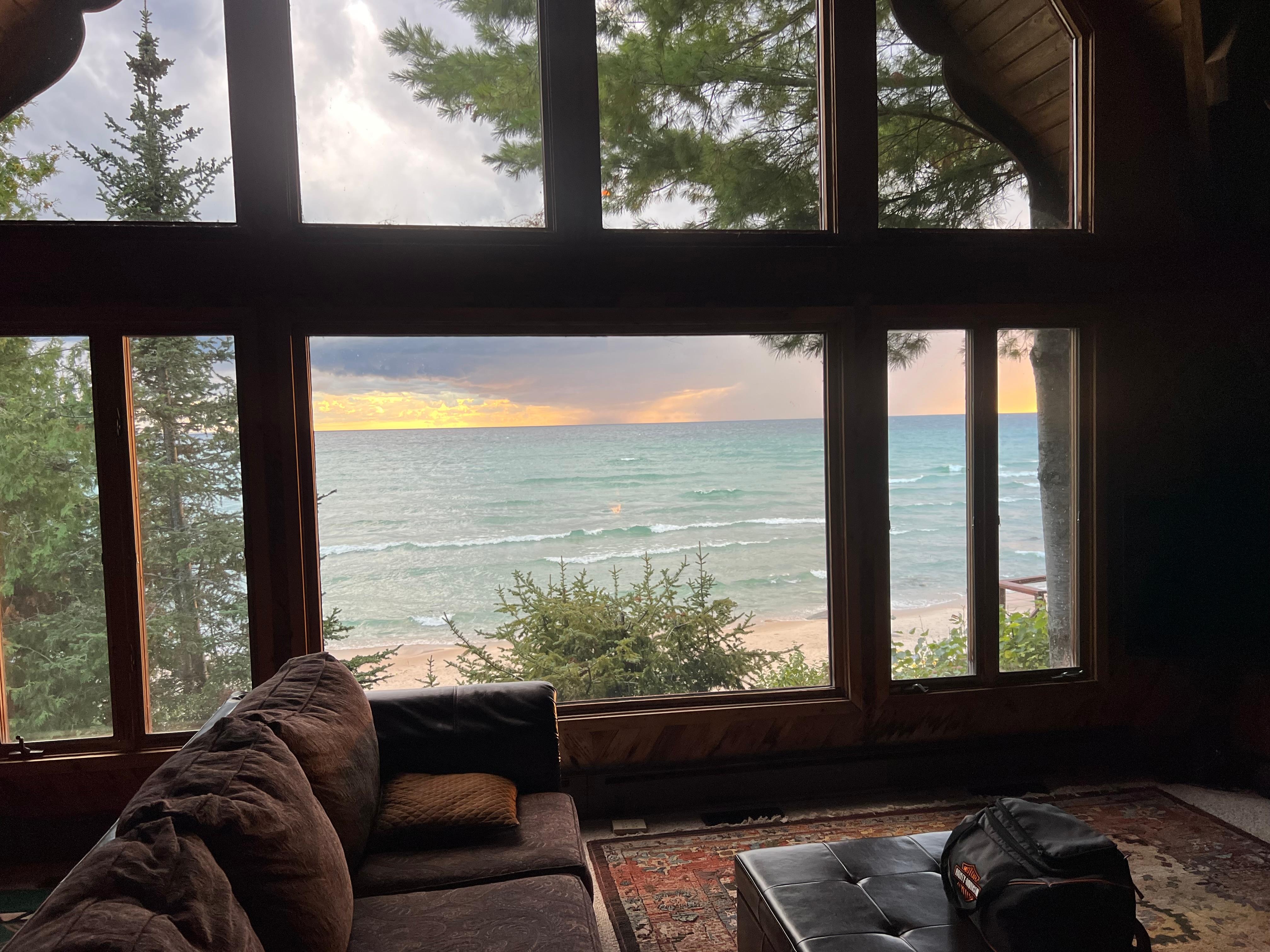 My husband and I have been staying at Buddy’s incredible lake house for several years, and it is always our favorite week of the year! The cottage is open and airy with stunning Lake Michigan views! Even rainy days are gorgeous with the picture windows showcasing the pristine beach and relaxing waves. The private, sandy beach that’s perfect for swimming and rock hunting, and the bonfire pit that can be enjoyed while star gazing, offer plenty to do from morning to night! Buddy is a wonderful, thoughtful host, and we look forward to returning for many years to come!
