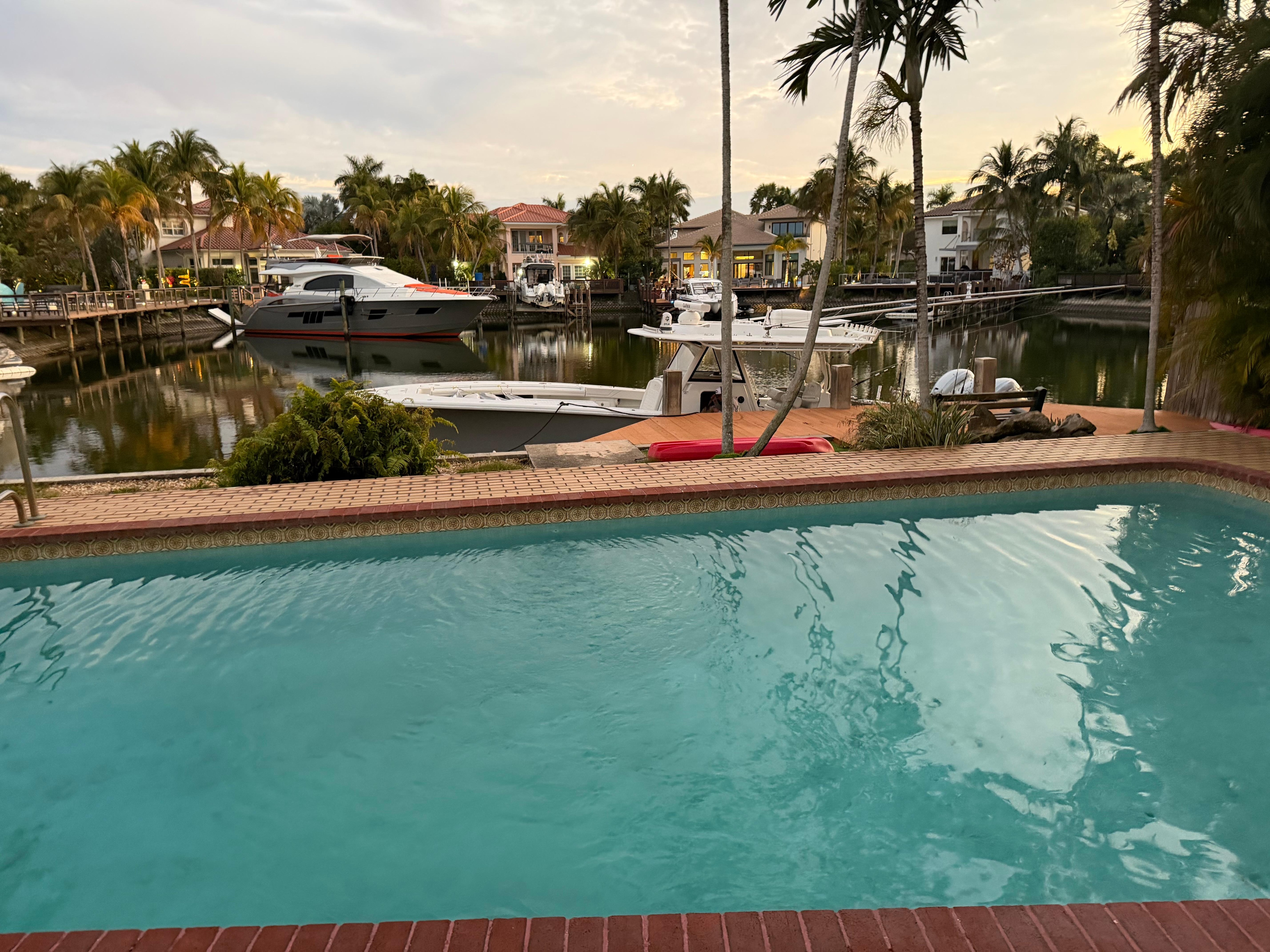 The waterfront home has gorgeous water and skyline views. Enjoy swimming and sunsets views put your boat on up 60 feet of to the private dock with the ocean access .Setting between the city and the beach There’s a heated pool enjoy swimming and sunsets off waterfront views. Covered veranda and barbecue, as well as outdoor sitting and dining areas. By the water, you’ll find a boat dock, kayaks. Wood floors and high ceiling. The fully equipped kitchen. For entertainment,65 inches TV, WiFi internet, there are pool table, a electronic music keyboard ,air conditioning. All bedrooms with doors. Upstairs master bedroom with king bed and TV, and en-suite bathroom and bedroom with 2 twin beds and, bedroom has queen bed and bathroom with bathtub ,loft with queen bed . Downstairs, there’s bedroom with a king bed and TV, and en-suite bathroom and bedrooms with queen beds and TVs, half bathroom. 2 Twin rollaway beds.Washer ,Dryer .Home has private courtyard, or take in the city’s beaches and nightlife, just a short boat ride or drive away. From the home location it’s 5-10 minutes to a Hollywood Beach, grocery store, restaurants, shopping and nightlife, Hollywood Circle and Hollywood Boardwalk, Gulfstream Racing & Casino and Mardi Gra Casino, Golf Course . The Fort Lauderdale airport is about a 6-mile trip. Miami international Airport 20 miles. South Beach, Lincoln Road and Ocean Drive and downtown Miami are just over 15-20 miles away, Bal Harbor shops is 8 miles away. Sun Shuttle Hollywood. App Service