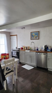 The kitchen is spacious and newly renovated, offering plenty of room to cook meals and enjoy time with family and friends. An AC unit in the kitchen keeps the downstairs area very cool. There are spices stocked and some essentials.