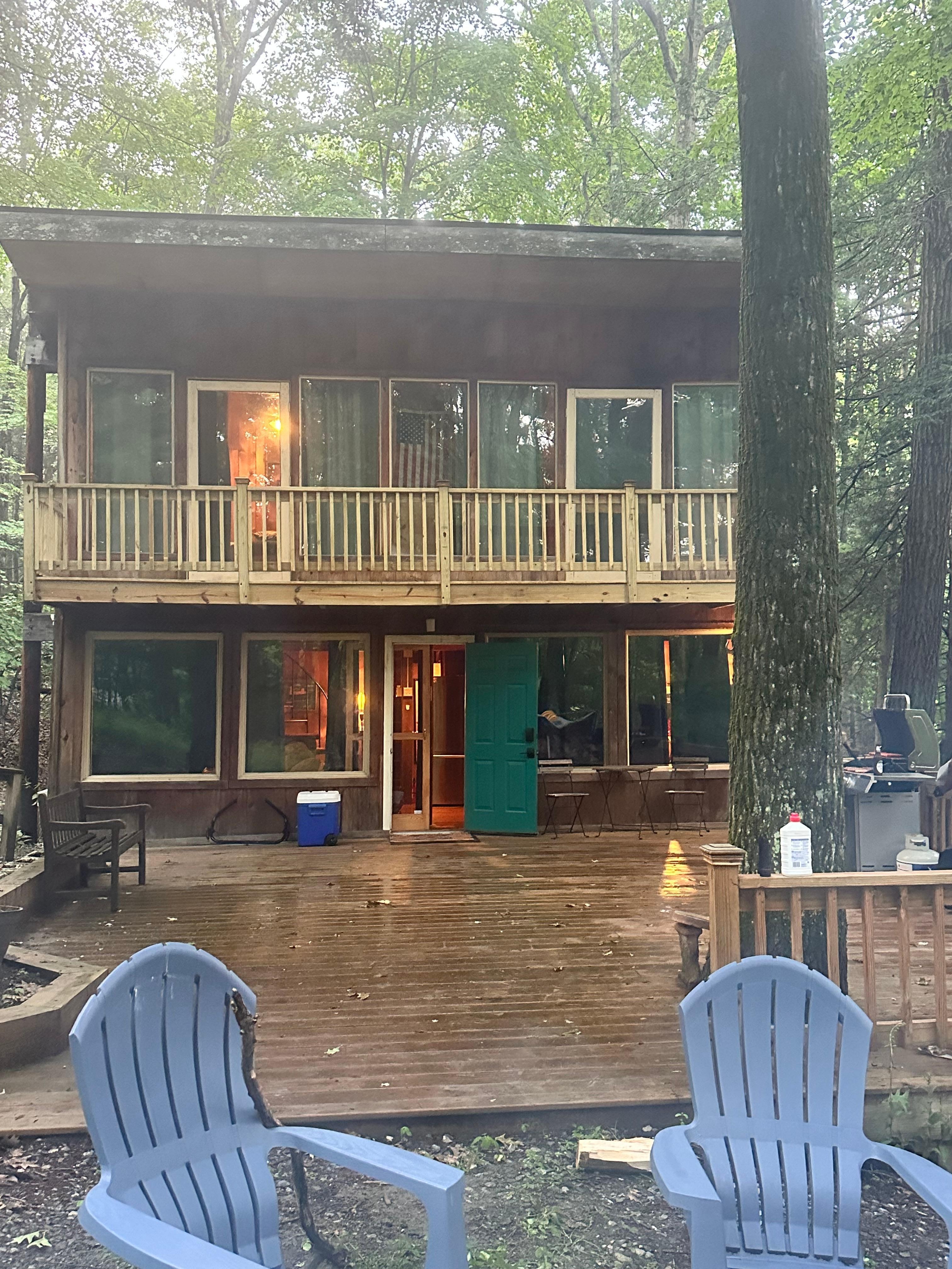 Awesome place in the woods. Very quiet. We ate dinner there most nights, stocked nicely with pans and plates and everything - its not a place you could just run out and get something. Having everything there was a big plus. We took nightly drives in the dark and spotted, deer, foxes, owls, racoons, possums. The land & woods were really beautiful esp at night. House was great, two floors w a spiral staircase. There is a large deck out back where you could eat and hang put. We had a great time here. The host was quick to communicate with us. Thank you for everything!