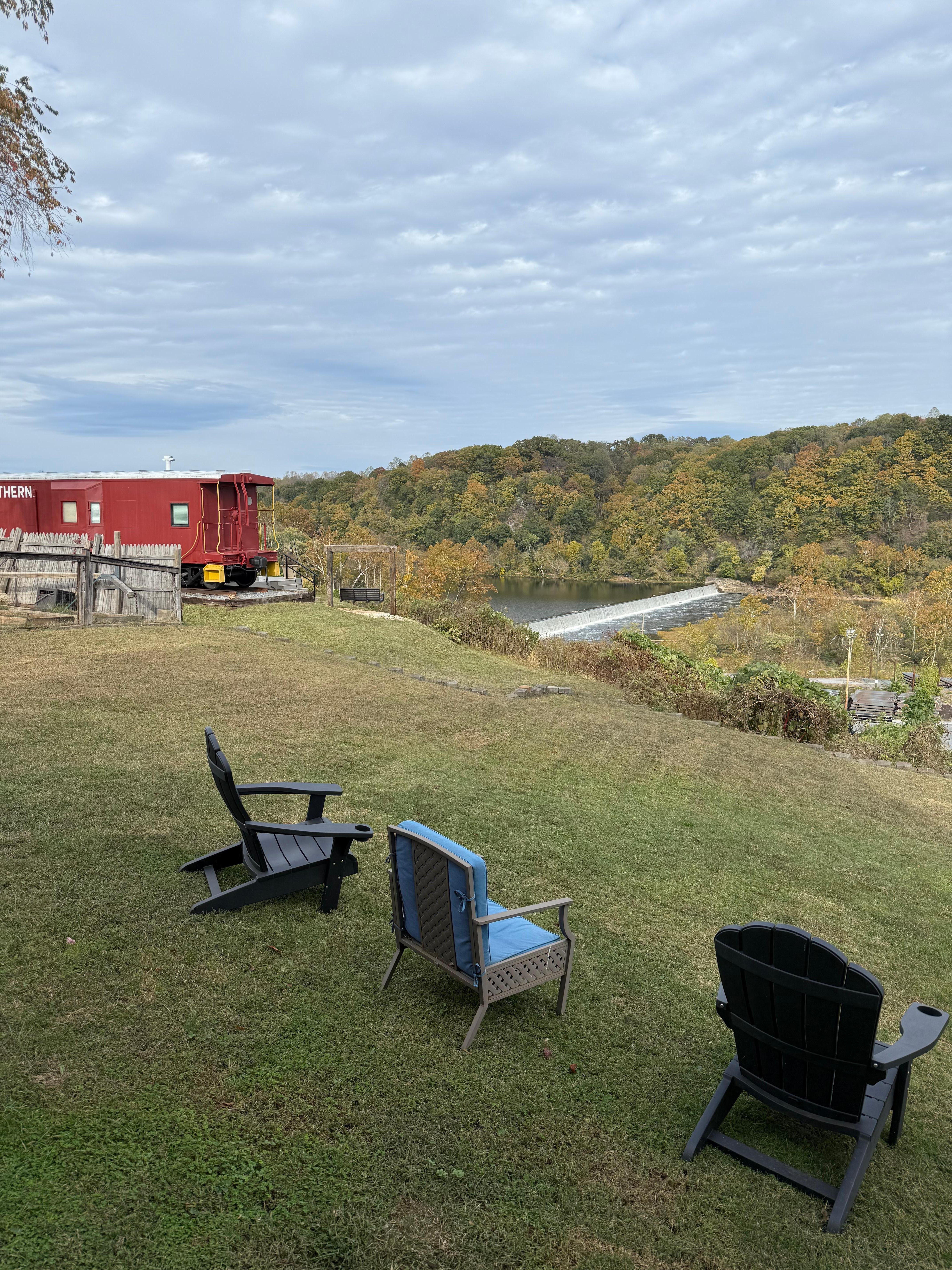 Another cool tidbit is that we also offer a red train caboose rental ("James Station") on the adjacent lot. You'll see it out the back of the apartment and we hope you'll come back for a unique stay!
