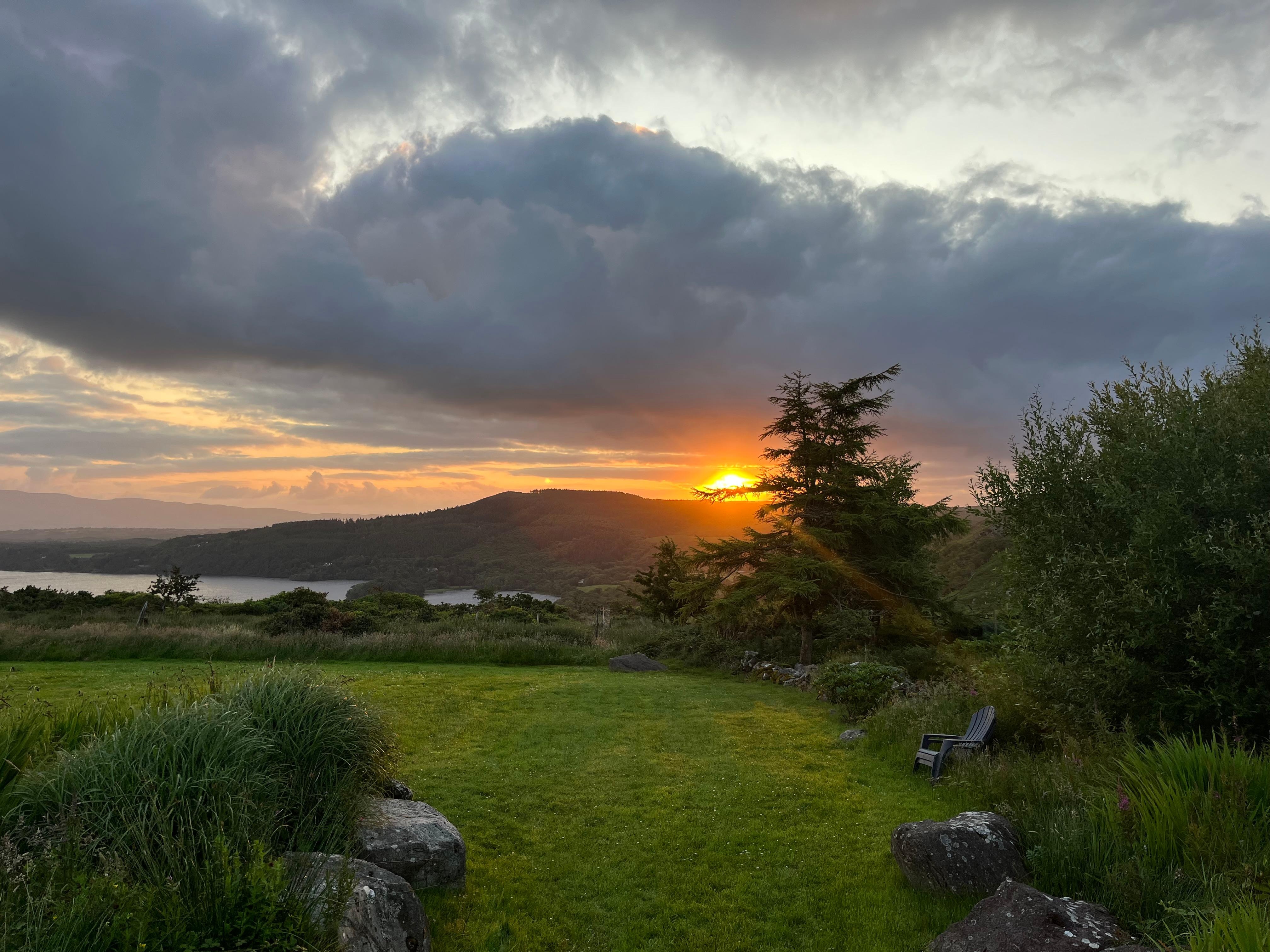 Jamesey's Cottage is a charming stone built holiday house. The house overlooks Caragh Lake on the Ring of Kerry, on the Wild Atlantic Way and has fantastic views of Dingle Bay and the lake. The home has been built using natural stone, wood beams, slate and teak windows and features a vaulted lounge with a stone fireplace. The large cottage (250sqm/2650sqft) has 5 bedrooms, 4 bathrooms and sleeps 11 people. The home is ideal for 2 families or 1 large family. Sorry, strictly no pets.