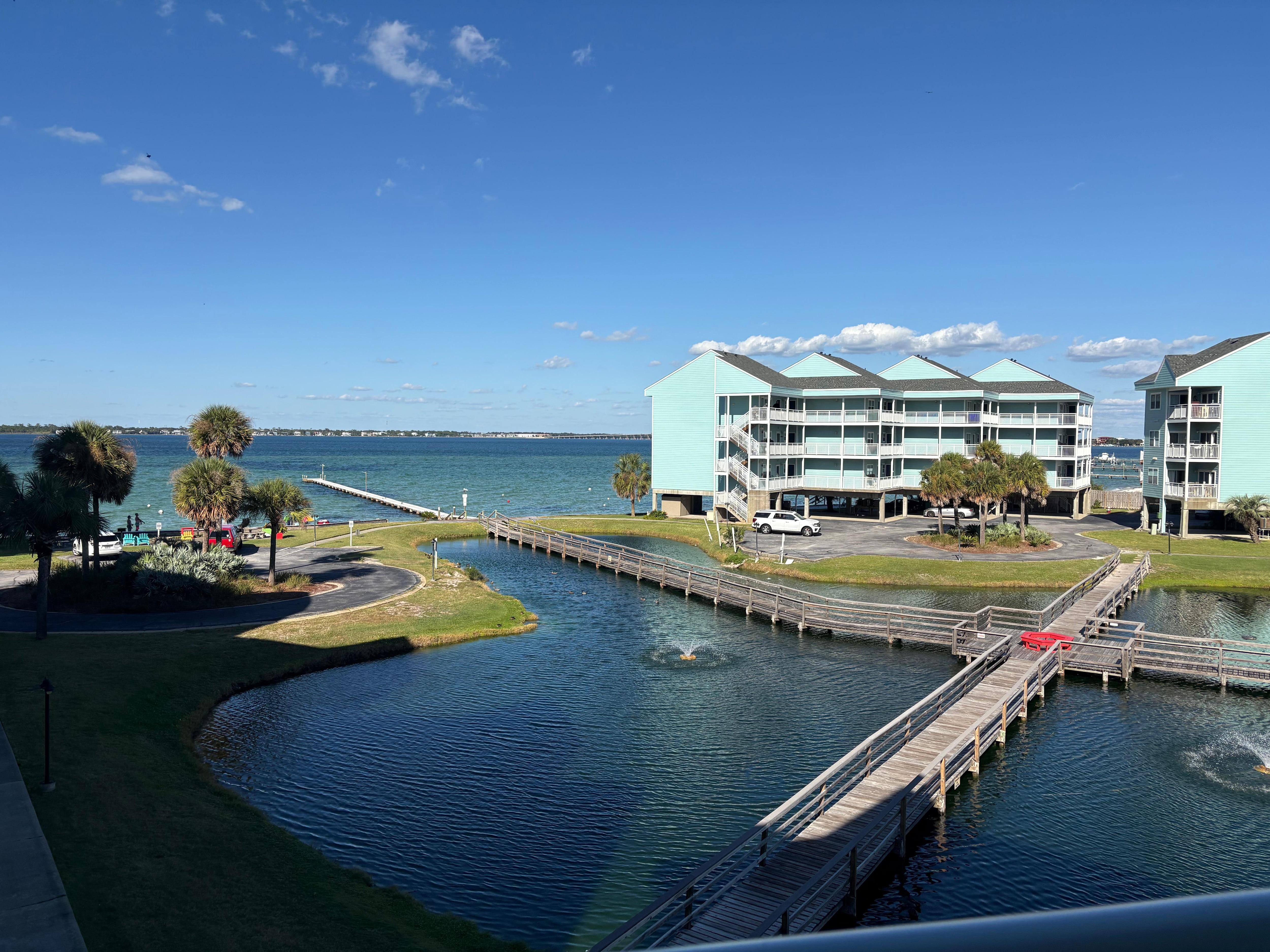 The Baywatch Condo community is a family friendly environment, adjacent to the Gulf Islands National Seashore, and the Fort Pickens State Park Aquatic Preserve. An open balcony provides a magnificent view of the Santa Rosa Sound. The community offers access to the Baywatch swimming pool, pier, and the Pensacola Beach Trolley service. Covered parking is available for two cars with additional parking available in the Baywatch community parking lot. The unit offers a full kitchen, 2 bedrooms, 2 bathrooms, living room, and balcony. Rent nightly or by the week.