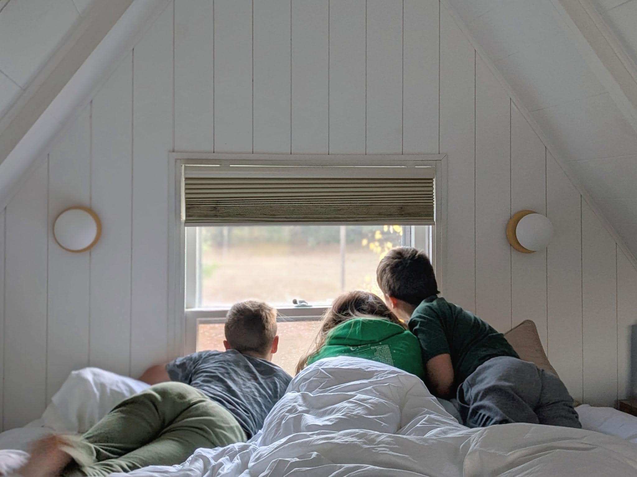 Accessibly ladder only, sleep like royalty in our loft, featuring a king bed overlooking the river for a magical view.