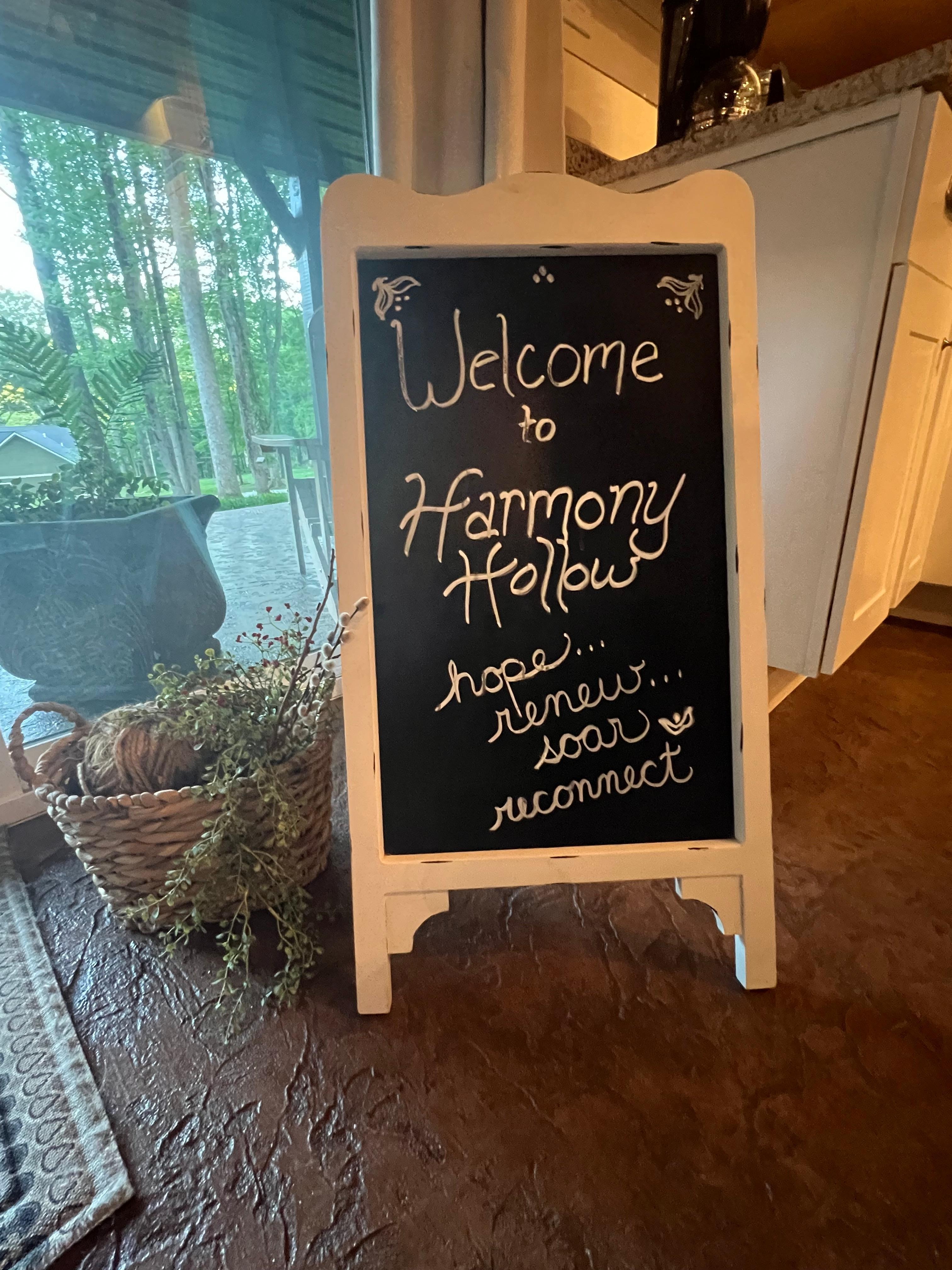Harmony Hollows charming and cozy barndominium is picturesque both inside and out, nestled in the woods with the creek nearby. It offers a very well-maintained hot tub only a step away from the barn, a large stone ventless gas fireplace, an oversized and luxurious shower and double-vanities, fully supplied kitchen, charcoal grill, large covered porch and outdoor dining and seating areas, outdoor fire pit with provided wood, central heat/air conditioning, and free Wifi and cable TV.