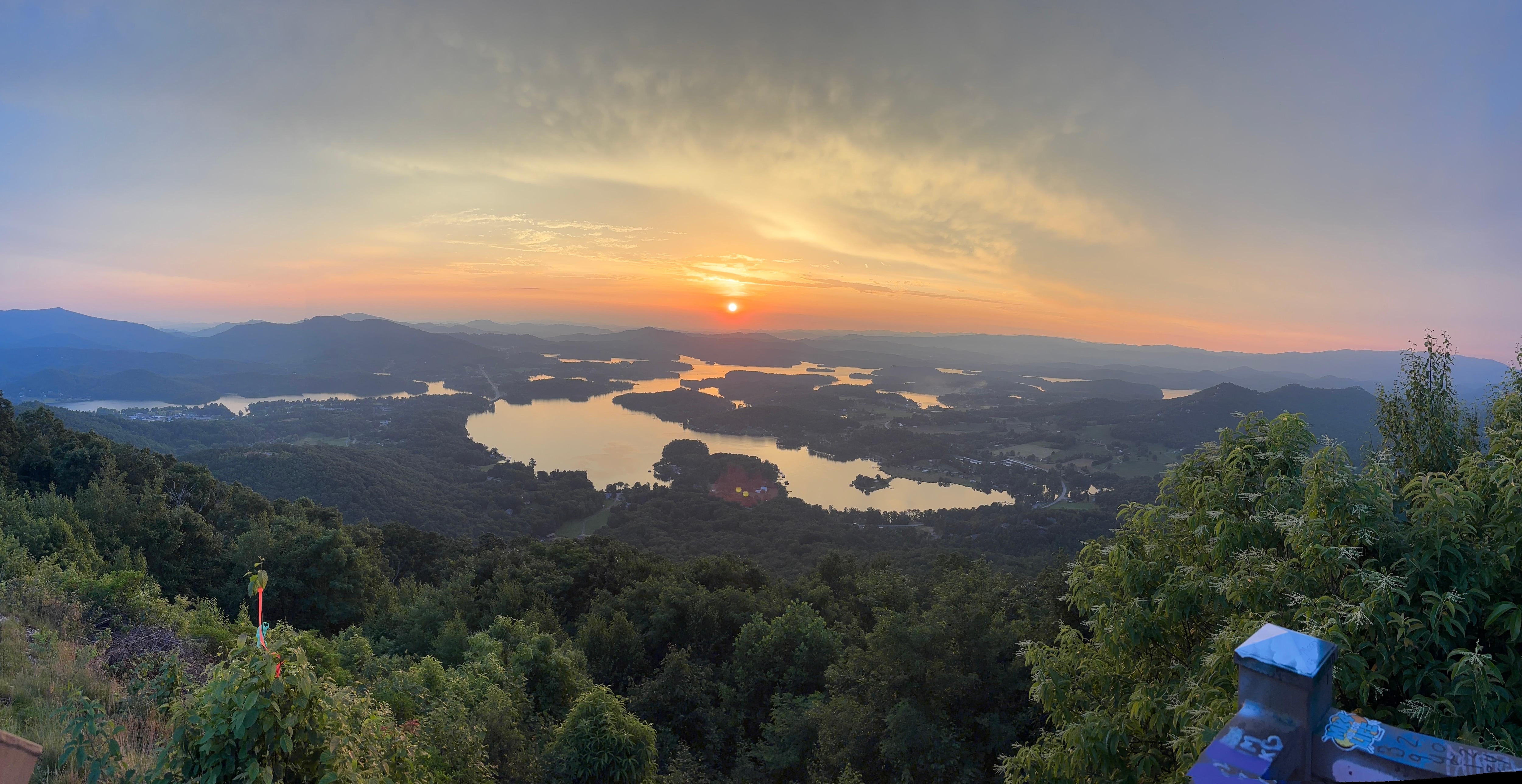 Enjoy sunsets from the enormous covered back porch overlooking the layered mountains and quiet north end of Lake Burton complete with a large stone fireplace (gas logs), 65-inch outdoor television, outdoor living space, and family-style outdoor dining table. Likewise, you can spread out in the adjacent family room centered around a beautiful stone fireplace (gas logs), large television, and plenty of room for your entire crew. As soon as you enter the home, you will fall in love with the privacy of the back porch, the openness of the main living area, and the views of the flowering Mountain Laurel from the windows of the fully-equipped kitchen complete with indoor dining area and stainless steel appliances. The main floor also features the master bedroom (1 King bed) with an en-suite bathroom complete with dual vanities, closet, and walk-in tile shower. Custom-made blackout curtains in the bedroom ensure that you can sleep as late your heart desires!