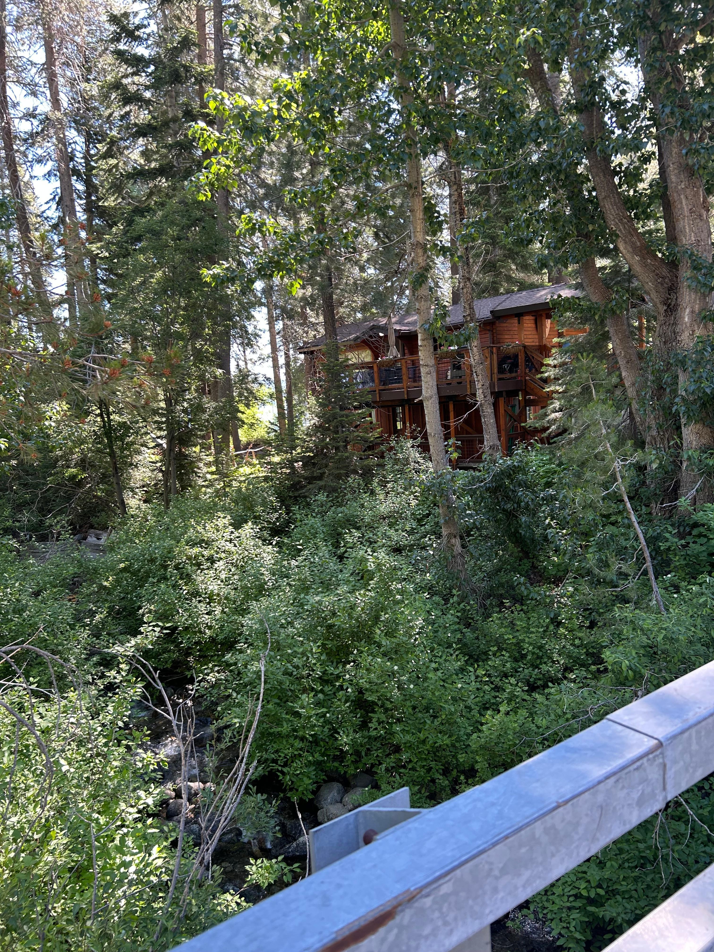 Lovely cabin with great deck overlooking scenic creek, tucked into trees with views of Lake Donner.