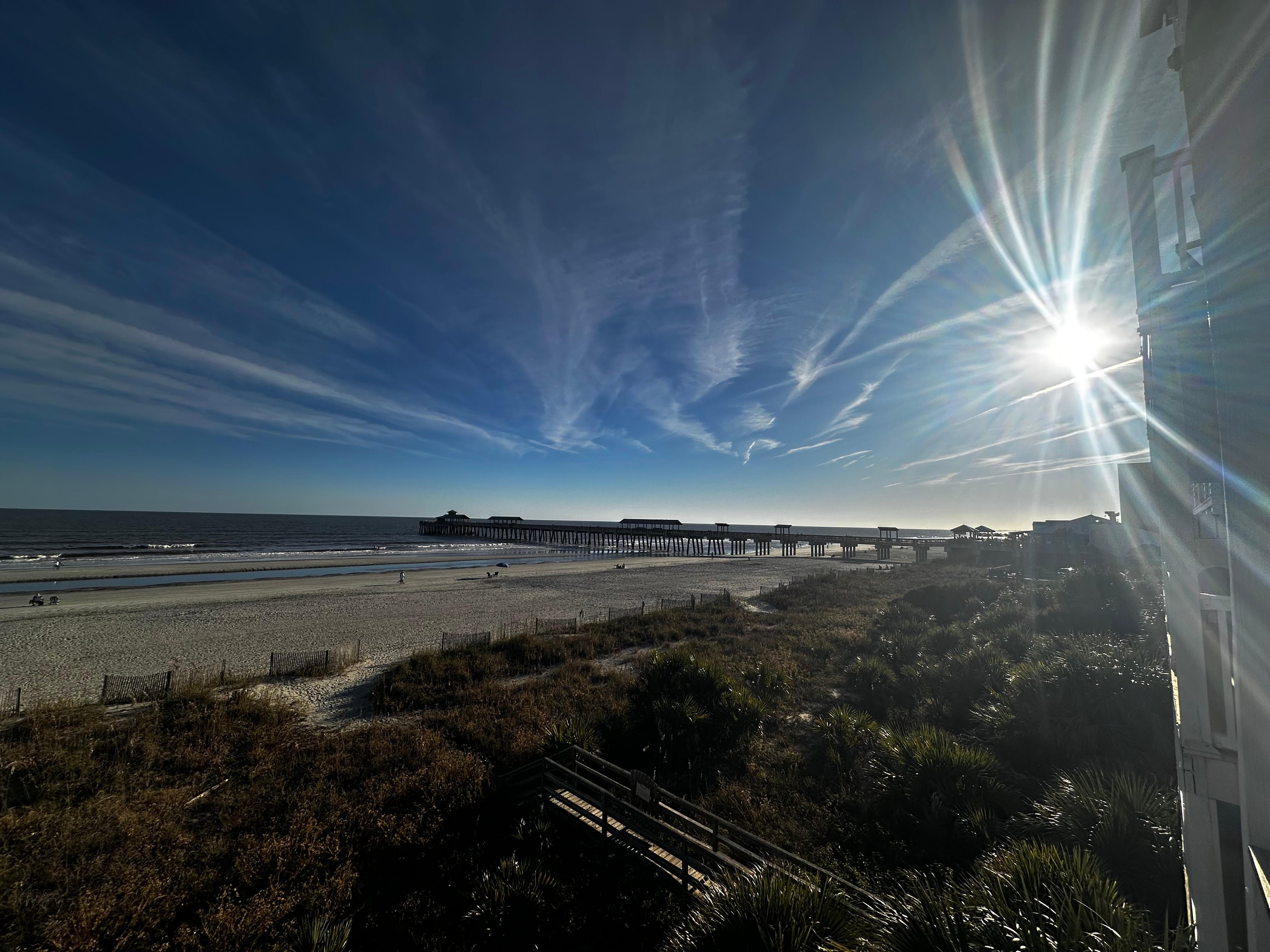 One of Folly's Best! This one-bedroom oceanfront condo is a perfect getaway for a couple or small family. The building was recently renovated to feature new decking and upgraded A/C units. The cozy unit is tastefully decorated, boasting hardwood floors and a compact modern kitchen. No matter your pleasure this is a great location for relaxing on the front porch drinking your morning coffee or sitting back with a cool beverage while taking in the amazing view of the beach right outside your door. When night falls stargazing is a must! This condo is located at one of the only sections of the beach that provides a lifeguard during the summer season. If you enjoy fishing the pier is located less than a block away. Folly Beach Suites shares laundry and HVAC with the neighboring unit, a locked door leads to the adjoining laundry room. Please keep temperatures at recommended levels and remove clothes from the washer/dryer as soon as possible. Please note that there is not an elevator and the balcony is non-private. 2 Delightful allows up to 3 well-behaved, house-broken, flea-treated dogs with approval. Please include the breed and size of your dogs when you inquire. 1 reserved parking space is included with the rental. All photos are current and accurately depict the property. Please book with confidence. This property is licensed by the city of Folly Beach as a vacation rental - License Number LIC000635. Because of the potential for fraud, we would not recommend booking a property not licensed by the city of Folly Beach as a vacation rental.