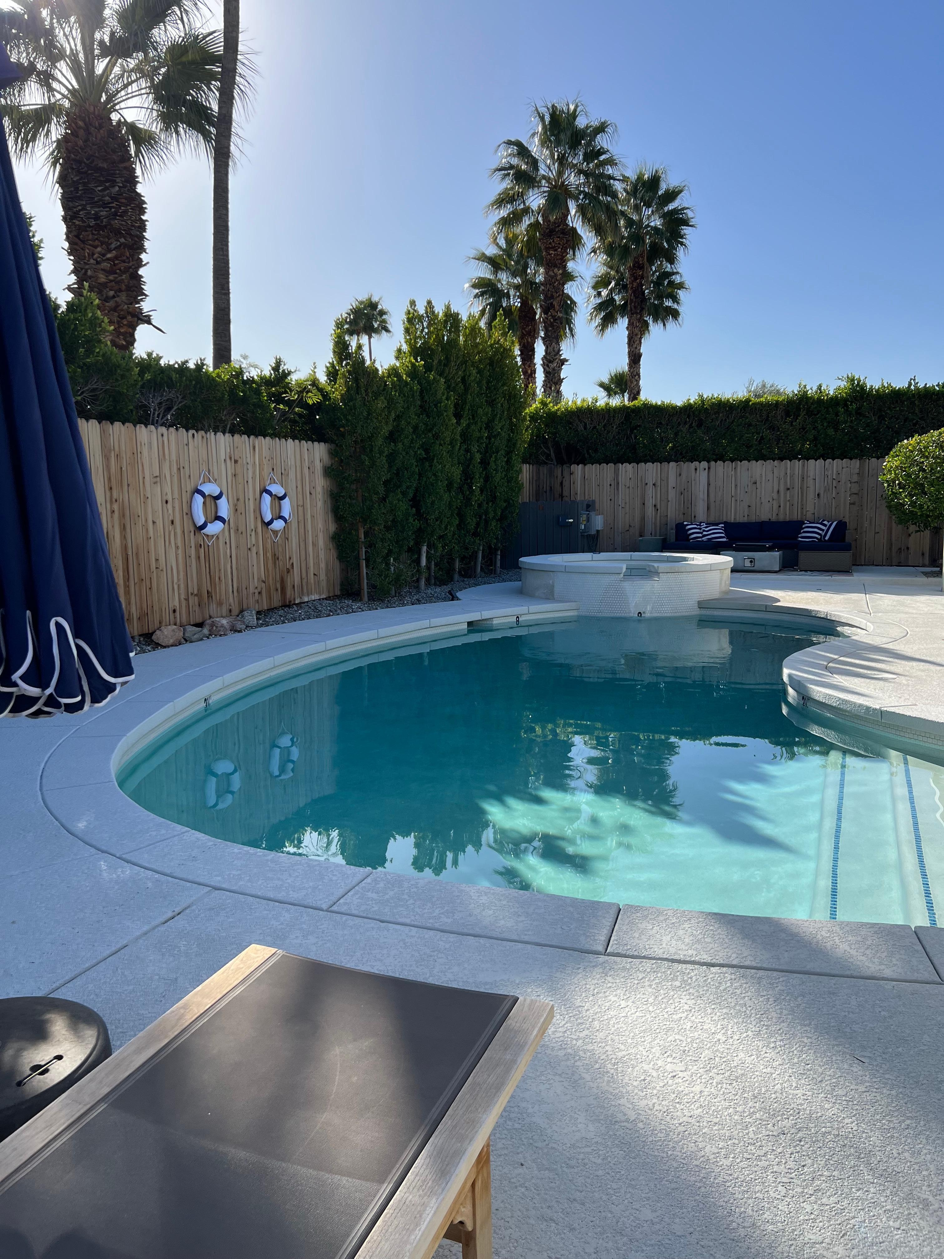 The backyard is a veritable water-lover’s oasis, where you’ll enjoy a spacious patio with sparkling inground saltwater pool all to yourselves. Spend your downtime working on your tan or turning the pages of a good book while reclining in chaise lounge chairs, taking refreshing dips to cool off from that plentiful Palm Springs sunshine. Soak your tired muscles the private hot tub while the grill master in your crew creates delicious barbeque delights on the gas grill. The outdoor dining set with umbrella is the perfect spot for enjoying meals al fresco. At the end of long days, gather together on the comfortable seating around the firepit to soak in the sunset while you toast up a round of tasty treats.