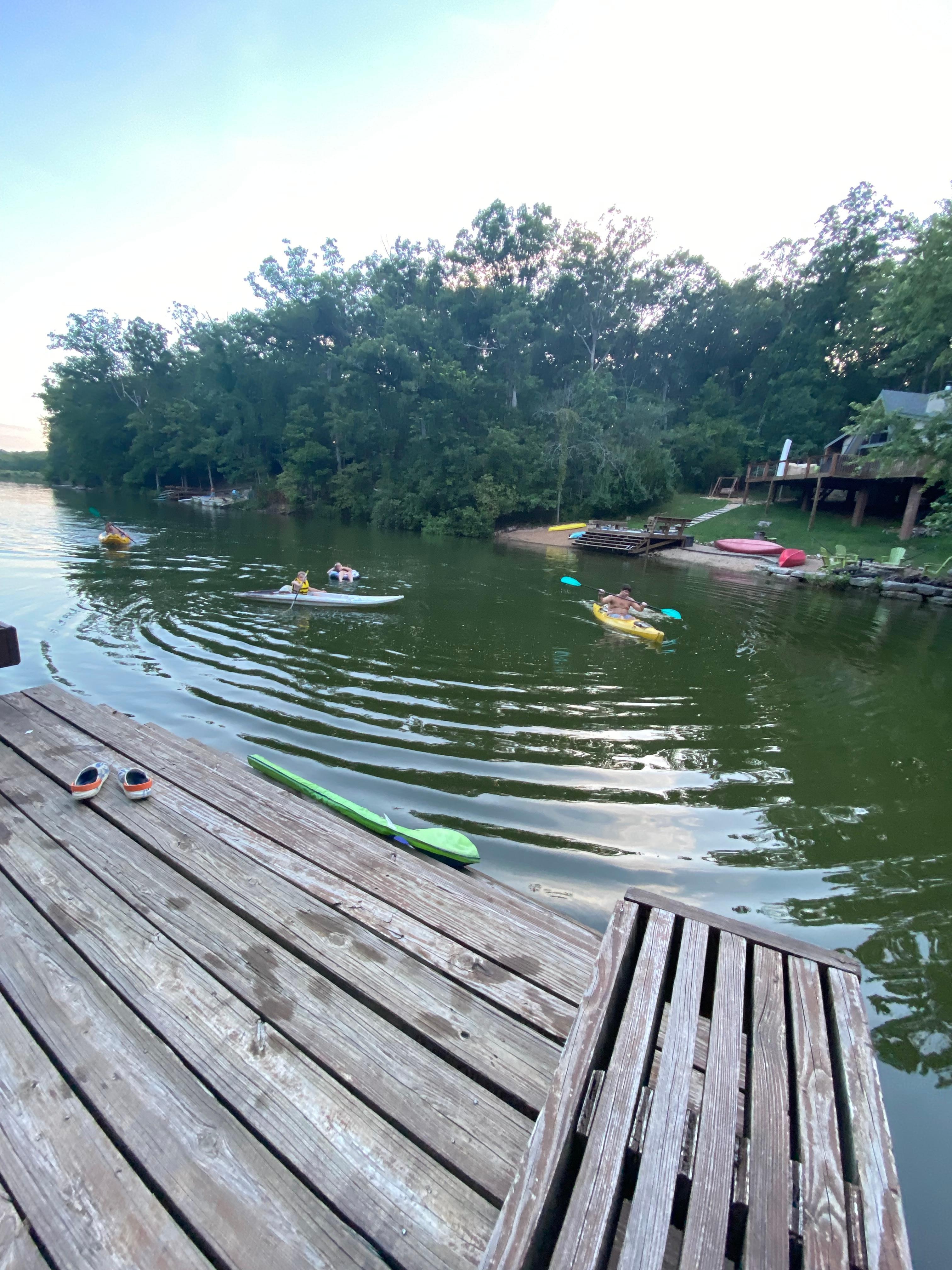 We have 3 bedrooms that can easily sleep 9 people comfortably, plus an air mattress, and pack n' play for additional guests. Redbird cabin is on the water and has an awesome wood-burning fireplace, laundry machines, dishwasher, smart TVs in every room, and many other amenities. We have tons of games, kid's toys, baby gear (bumbo seat, sound machine, bath), a ping pong table, and custom bar with seating for 6. 1 canoe, 2 kayaks, and plenty of life jackets for all ages.