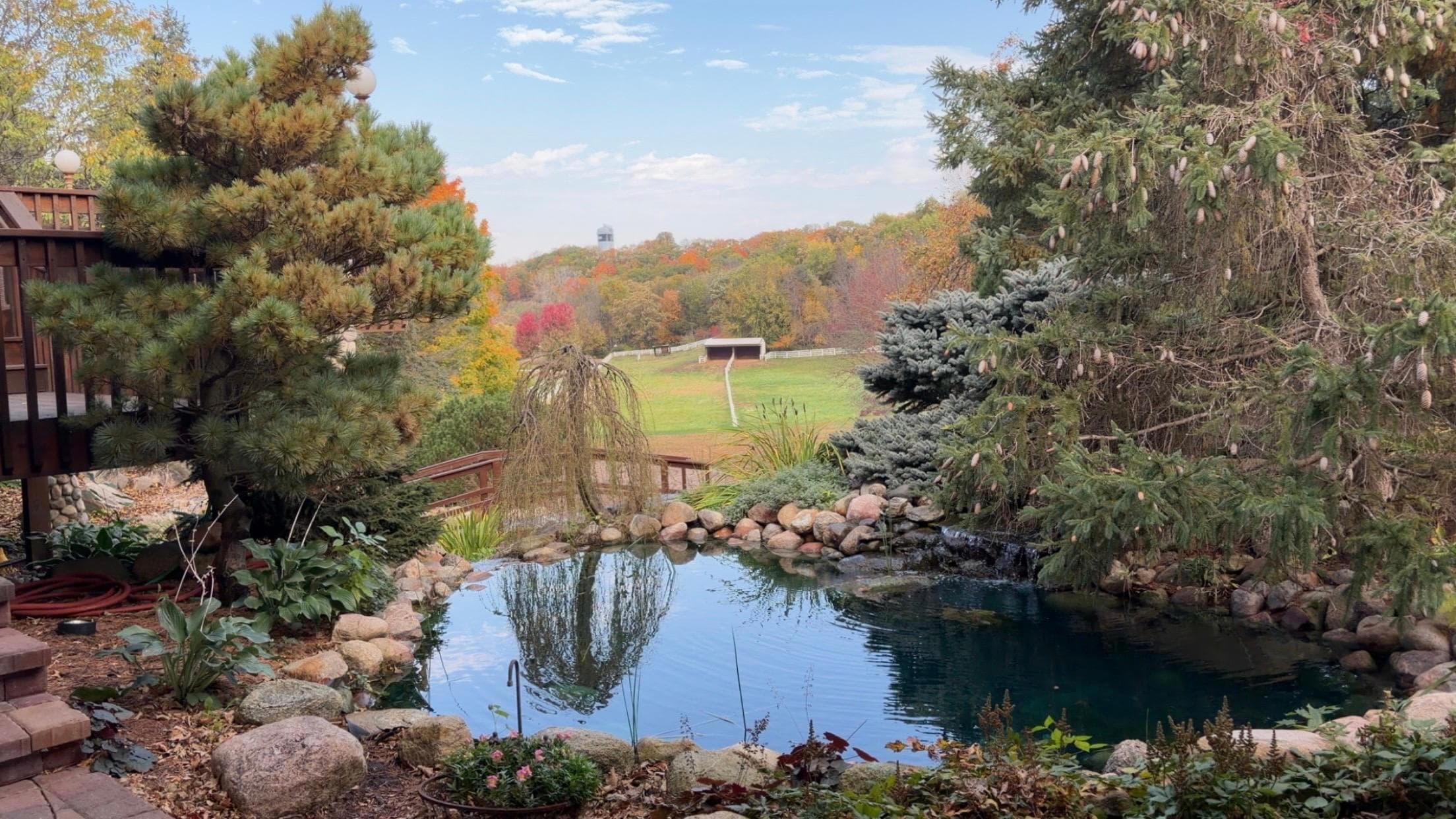 The property also features a picturesque pond with a charming walking bridge, adding to the retreat's idyllic atmosphere. This peaceful setting is perfect for morning strolls or quiet moments of reflection. For those who love to explore the outdoors, our property offers over two miles of private walking and bike trails. Whether you're an avid hiker or just looking for a leisurely walk, these trails provide a wonderful opportunity to connect with nature. Additionally, the retreat offers easy access to the Jordan city trails, giving you even more options for outdoor adventures, boutique shopping, or a trip to the ice cream store.