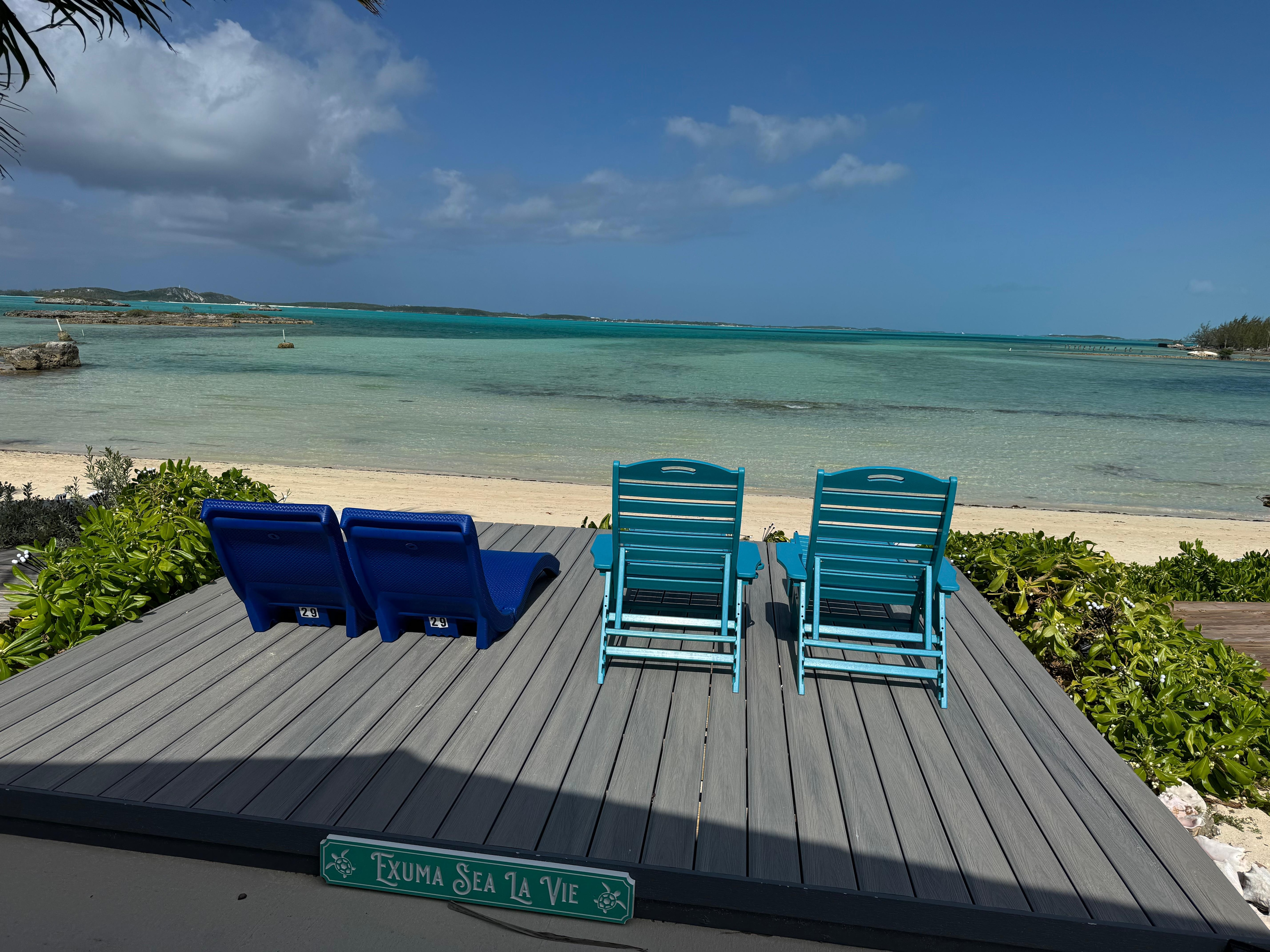 Exuma Sea La Vie (Cottage 29): Beachfront / Oceanfront villa with beautiful views of the ocean, beach and sunrise that are just steps from the front door. The beach in front of the villa is white and sandy overlooking Elizabeth Harbour, with relatively calm waters protected by picturesque Stocking Island where stunning views are a given and goosebumps are guaranteed.