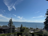 Spectacular ocean views from this Adult only, fully equipped, furnished one bedroom suite with it’s own private entrance. Overlooking Semiahmoo Bay 180 degree vista takes in views of Mount Baker, Active Pass and all of the Gulf Islands in between. Watch the sun rise and set from your large covered private patio. Stairs lead to the beach, Promenade, with restaurants and shops, the famous White Rock and pier. Nature is at your doorstep . The property backs onto a 28 acre forest nature park, which has over 3 miles of walking trails and year round streams. We are frequently visited by Eagles, song birds, woodpeckers and other inhabitants of the nature park. Public transit just steps away. Centrally located with easy access to Vancouver, the Vancouver International airport, B.C Ferry terminals to Vancouver Island, Whistler Village and the United States border. Check-in 3PM Check-out 11AM 3 nights minimum stay.