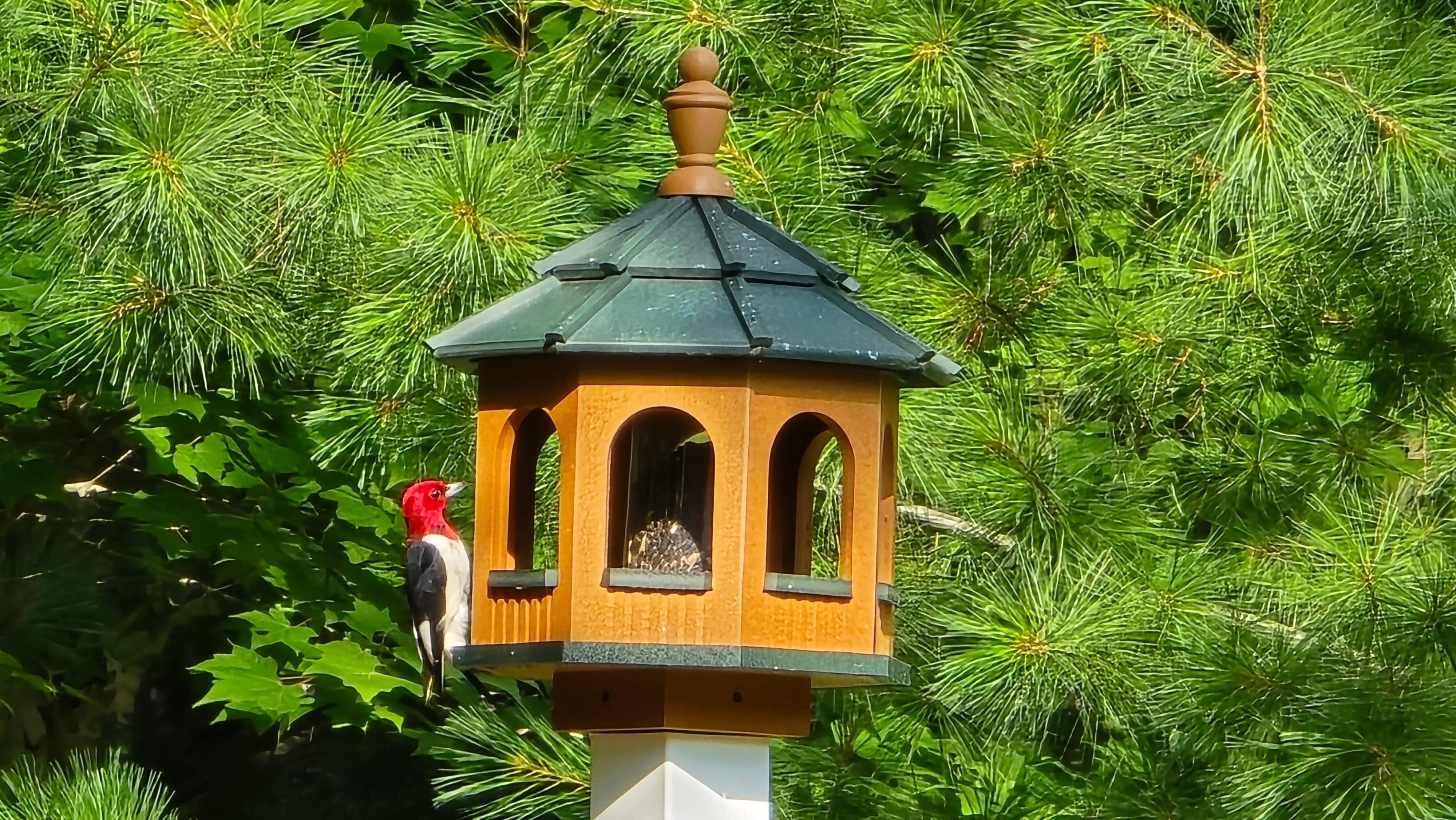 • Lake-facing patio: log swing, picnic table with umbrella, and Traeger smoker (pellets provided)