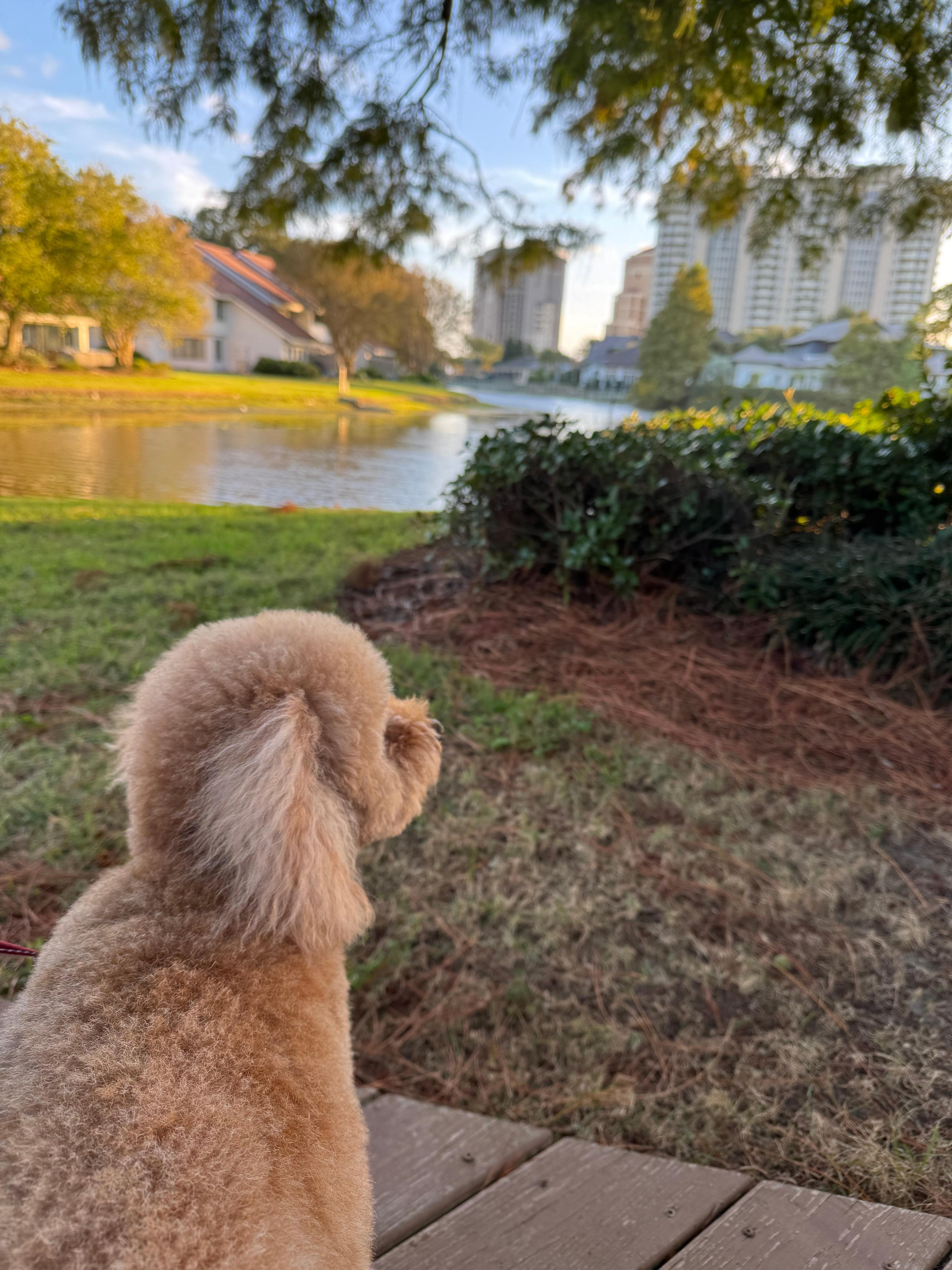 The parking area safe, but some difficulty in walking to unit at night, sidewalk not very well lit, and some walkways uneven, so just needed extra caution. Loved that it was end unit & next door to community pool, made it very convenient to access. Back patio with Adirondack chairs beautiful spot to drink wine right on Horseshoe lake. Our small goldendoodle loved the backyard & neighborhood, next to bridge over the lake. Had beautiful Herons that “fished” in the lake. The townhouse was clean, decor tasteful, bathrooms a little older, but still functional. Our golf cart had issues, the Host immediately brought over a new cart that helped us get around the resort. Our Host also very responsive when we could not locate our check in code, and any questions we had. Overall a very good & relaxing experience in October.