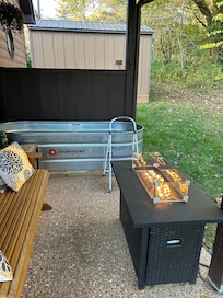 Outdoor Bliss: Savor your mornings on the wrap-around covered porch, complete with a luxurious outdoor tub (hot/cold faucet) and cozy porch swings. Gather around the fire pit for memorable evenings under the stars.