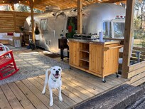 You won’t be camping in this Airstream! With standard residential plumbing (meaning no rv toilet or small capacity rv hot water), full shore power, instant hot water heater and beautiful furnishings and finishes you will be in full vacation mode. Open floor plan with living room, bedroom, full bathroom with stunning shower and kitchenette complete with mini fridge, microwave, toaster, Kuerig and full custom French press set up. Step outside your door onto a huge covered patio with tons of outdoor seating and an outdoor kitchen with a two burner range. Great location close to everything!